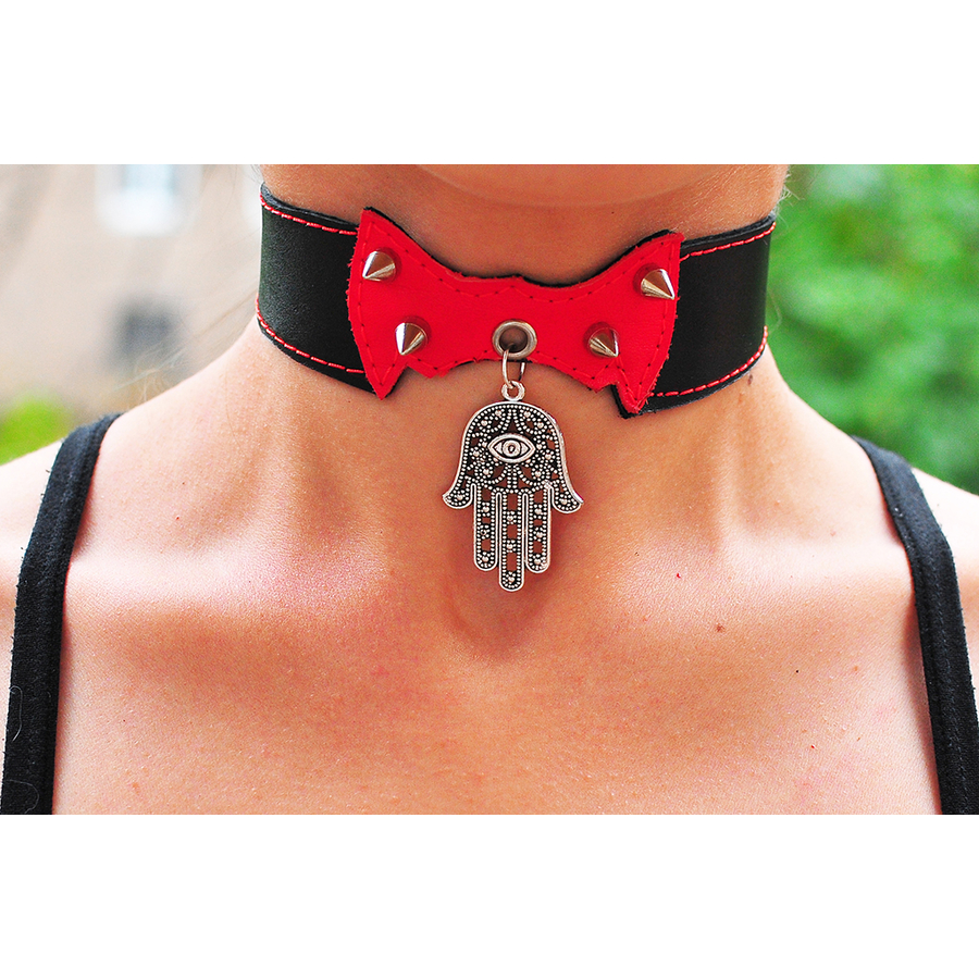 Кожаный чокер (ar-003) с кулоном Рука Бога (Хамса)
