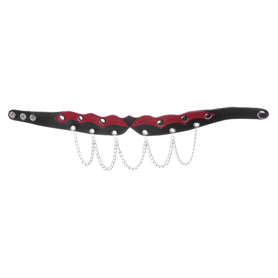 Кожаный чокер с цепочками и хольнитенами (черно-красный) №319