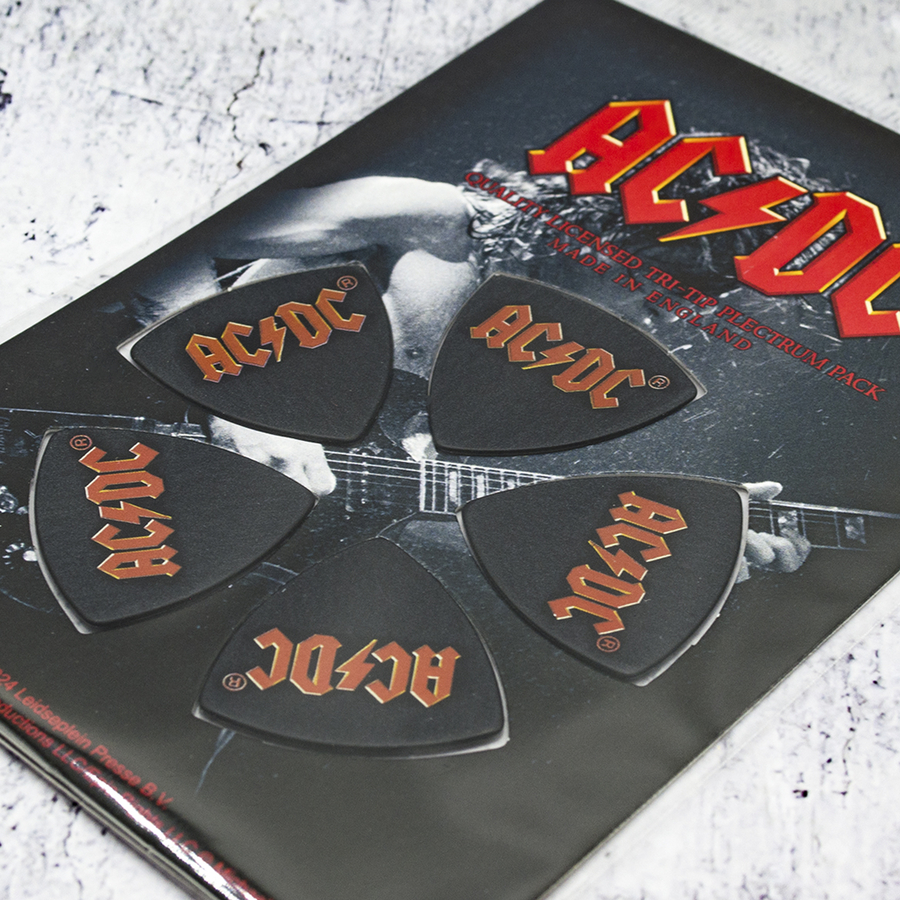 Подарочный набор медиаторов AC/DC - LOGO (mol-049). Этот товар является официальным лицензированным мерчем (Officially Licensed). Медиаторы с качественным детализированным изображением изготовлены из ПВХ, толщина 1.14 мм, гибкость соответствует медиаторам классификации medium. Медиатор формы Equilateral-Triangle, это означает, что все стороны такой формы являются рабочими и удобно тем, что гитаристу не приходится отвлекаться и проверять, правильно ли он принял медиатор. Хотя выбор формы это сугубо индивидуально. Каждый набор из пяти медиаторов упакован в блистер на картонной основе со стилизованным изображением группы или альбома, которому посвящен конкретный набор, презентабельный вид, это идеальный подарок для настоящих фанатов группы, для начинающих и профессиональных музыкантов и как просто действительно красивый и оригинальный сувенир . Сделано в Англии.