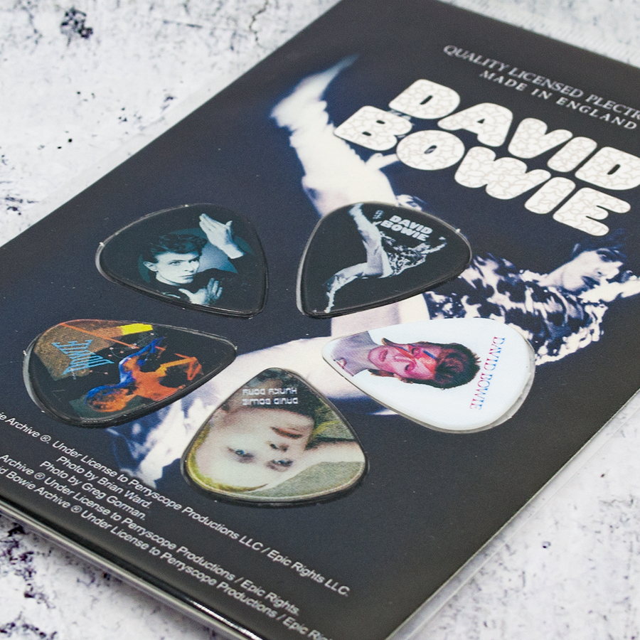Подарочный набор медиаторов DAVID BOWIE - THE MAN WHO SOLD THE WORLD (mol-031) Данный товар является официальным лицензированным мерчем (Officially Licensed). Медиаторы с качественным детализированным изображением, изготовлены из ПВХ, толщина 1.14 мм, гибкость соответствует медиаторам классификации medium. Каждый набор из пяти медиаторов упакован в блистер на картонной основе со стилизованным изображением группы или альбома, которому посвящен конкретный набор, имеет презентабельный вид, это идеальный подарок для настоящих фанатов группы, для начинающих и профессиональных музыкантов и как просто действительно красивый и оригинальный сувенир. Сделано в Англии.
