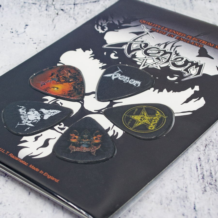 Подарочный набор медиаторов VENOM - BLACK METAL (mol-011) Данный товар является официальным лицензированным мерчем (Officially Licensed). Медиаторы с качественным детализированным изображением, изготовлены из ПВХ, толщина 1.14 мм, гибкость соответствует медиаторам классификации medium. Каждый набор из пяти медиаторов упакован в блистер на картонной основе со стилизованным изображением группы или альбома, которому посвящен конкретный набор, имеет презентабельный вид, это идеальный подарок для настоящих фанатов группы, для начинающих и профессиональных музыкантов и как просто действительно красивый и оригинальный сувенир. Сделано в Англии.