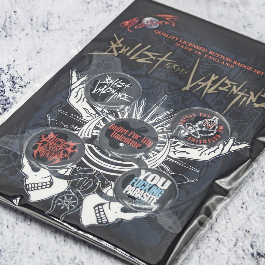 Подарочный набор значков BULLET FOR MY VALENTINE - LOGO (iol-077). Данный товар является официальным лицензированным мерчем (Officially Licensed). Значки с качественным детализированным изображением, на пластиковой основе, оборудованы надежной металлической булавкой с тыльной стороны. На каждом значке с обратной стороны указан номер партии. Каждый набор из пяти значков упакован в блистер на картонной основе со стилизованным изображением группы или альбома, которому посвящен конкретный набор, имеет презентабельный вид, это идеальный подарок для настоящих фанатов группы. Сделано в Англии.