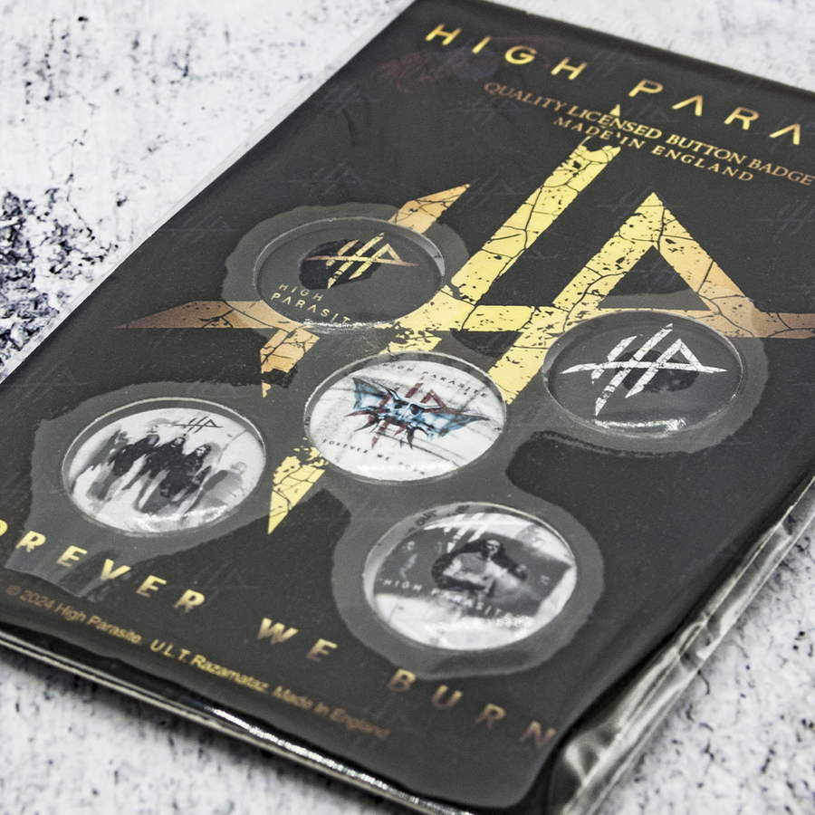 Подарочный набор значков HIGH PARASITE - FOREVER WE BURN (iol-079). Данный товар является официальным лицензированным мерчем (Officially Licensed). Значки с качественным детализированным изображением, на пластиковой основе, оборудованы надежной металлической булавкой с тыльной стороны. На каждом значке с обратной стороны указан номер партии. Каждый набор из пяти значков упакован в блистер на картонной основе со стилизованным изображением группы или альбома, которому посвящен конкретный набор, имеет презентабельный вид, это идеальный подарок для настоящих фанатов группы. Сделано в Англии.