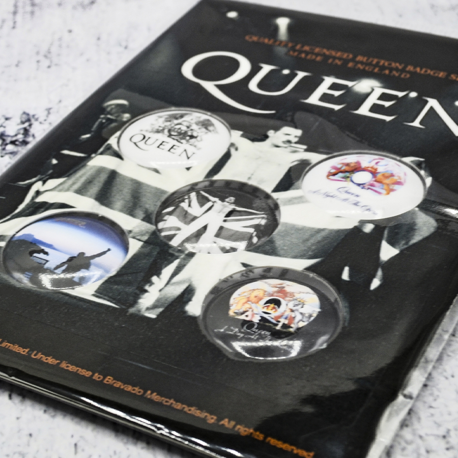 Подарочный набор значков QUEEN - FREDDIE (iol-070). Данный товар является официальным лицензированным мерчем (Officially Licensed). Значки с качественным детализированным изображением, на пластиковой основе, оборудованы надежной металлической булавкой с тыльной стороны. На каждом значке с обратной стороны указан номер партии. Каждый набор из пяти значков упакован в блистер на картонной основе со стилизованным изображением группы или альбома, которому посвящен конкретный набор, имеет презентабельный вид, это идеальный подарок для настоящих фанатов группы. Сделано в Англии.