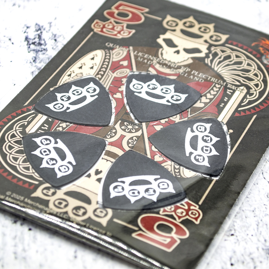 Подарочный набор FIVE FINGER DEATH PUNCH - KNUCKLE CROWN (mol-060). Этот товар является официальным лицензированным мерчем (Officially Licensed). Медиаторы с качественным детализированным изображением изготовлены из ПВХ, толщина 1.14 мм, гибкость соответствует медиаторам классификации medium. Медиатор формы Equilateral-Triangle, это означает, что все стороны такой формы являются рабочими и удобно тем, что гитаристу не приходится отвлекаться и проверять, правильно ли он принял медиатор. Хотя выбор формы это сугубо индивидуально. Каждый набор из пяти медиаторов упакован в блистер на картонной основе со стилизованным изображением группы или альбома, которому посвящен конкретный набор, презентабельный вид, это идеальный подарок для настоящих фанатов группы, для начинающих и профессиональных музыкантов и как просто действительно красивый и оригинальный сувенир . Сделано в Англии.