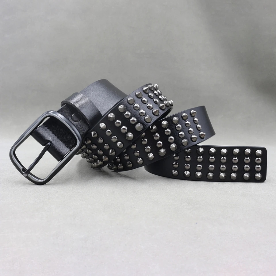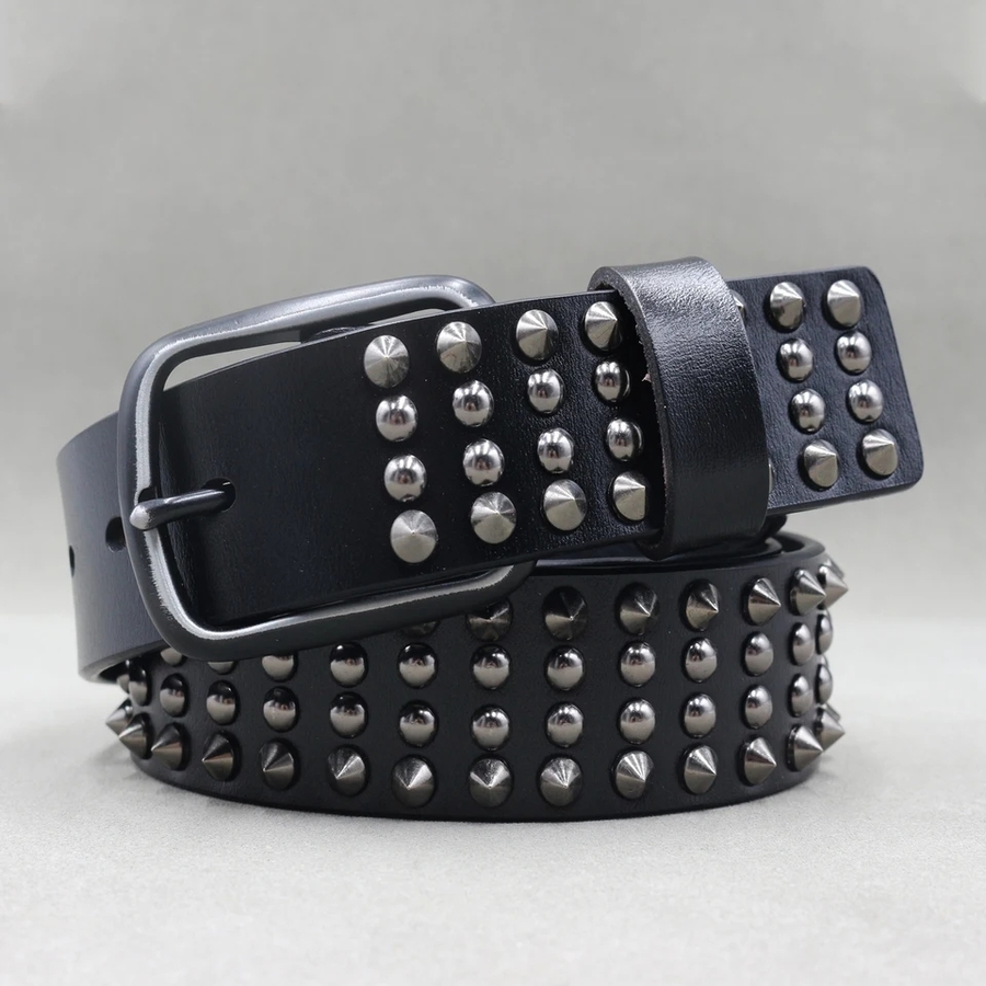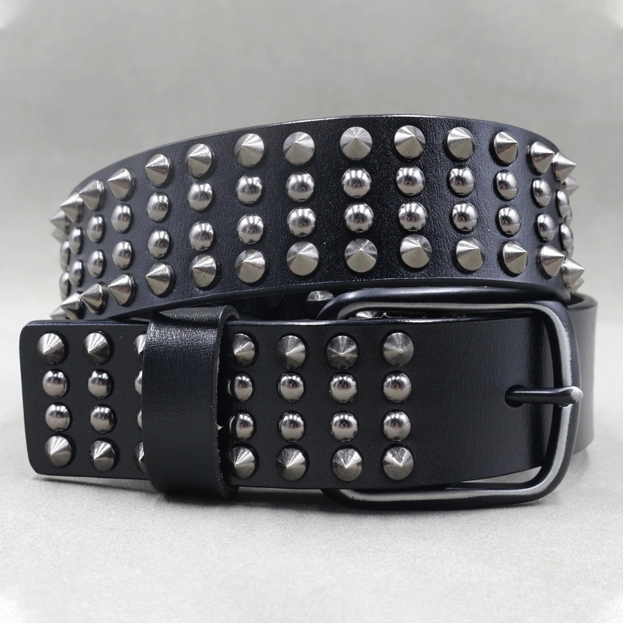 Ремень кожаный Два ряда маленьких шипов и два ряда заклепок (bсl-002)