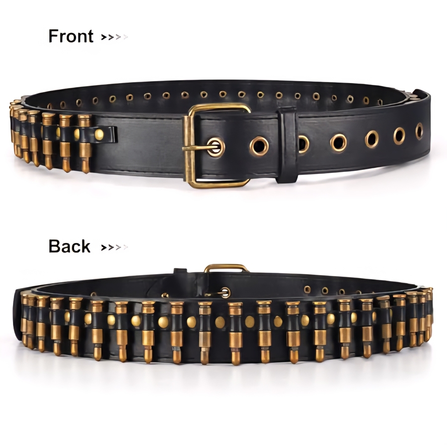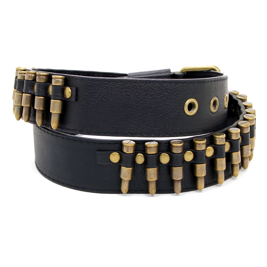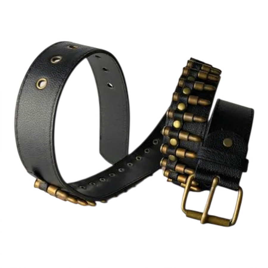Этот аксессуар является универсальным для многих субкультур: Thrash, Death, Black Metal, для которых патронташ является обязательным элементом сценического и повседневного образа (вдохновленный стилем групп Slayer, Destruction, Sodom или Motörhead); панков и представителей Hardcore-сцены, которые ценят протестный и провокационный стиль: байкеров, как дополнение к кожаным брюкам и косухам; ценителей стиля Military и Post-Apocalyptic: тех, кто создает сложные образы для тематических вечеринок или фестивалей. Добавь своему образу бескомпромиссной агрессии и настоящего металлического драйва! Этот ремень, декорированный аутентичными муляжами патронов, является одним из самых узнаваемых символов экстремальной музыкальной сцены. Это не просто элемент гардероба, а заявление о твоей принадлежности к культуре тяжелого металла. Материал: Высококачественная мягкая синтетическая кожа. Качественная фурнитура и отделка. Размер: Общая длина - 104 см, длина от пряжки до последнего отверстия 94 см, ширина - 3,8 см.