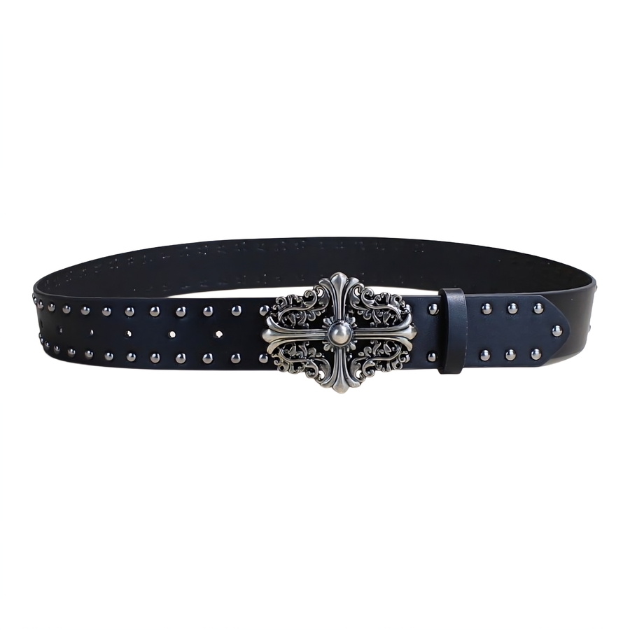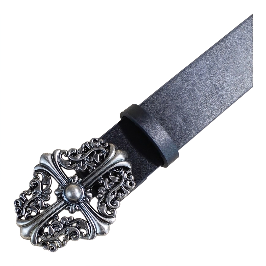 Ремень с пряжкой Крест в растительном узоре (PU кожа) Материал: Высококачественная полиуретановая кожа. Качественная фурнитура и отделка. Пряжка металлическая. Размер: Длина ремня 100 см, ширина 3,7 см, длина от застежки пряжки до первого отверстия 68 см, до последнего отверстия 93 см.
