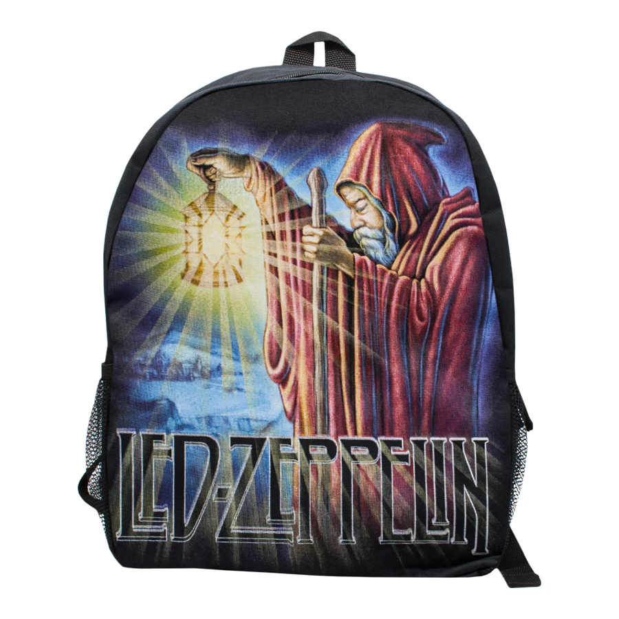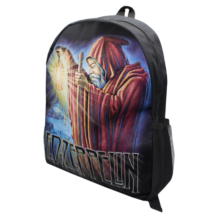 Рюкзак Led Zeppelin (The Hermit) размер L (th). Оригинальный городской рюкзак выполнен из прочного коттона, внутри влагозащитная подкладка. Объемное отделение имеет также два кармашка на задней внутренней стенке. По бокам снаружи расположены сетчатые карманы. Лямки надежно пришиты к рюкзаку и дополнительно прошиты лентой для большей прочности. Изображение нанесено методом шелкотрафаретной печати, не стирается и не выгорает. Стирать в холодной воде, не гладить. В сушильной машине сушить при низкой температуре. Производство Таиланда.