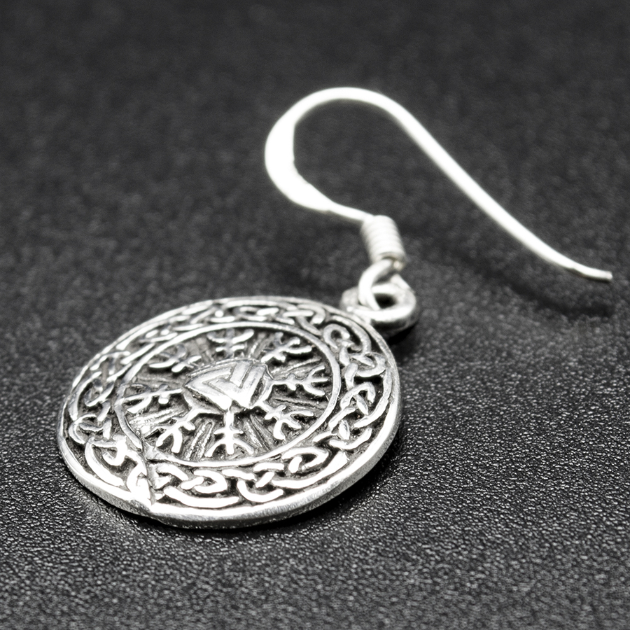 Серьга-крючок Aegishjalmur - шлем ужаса (серебро, 925 проба) (ehs-031)