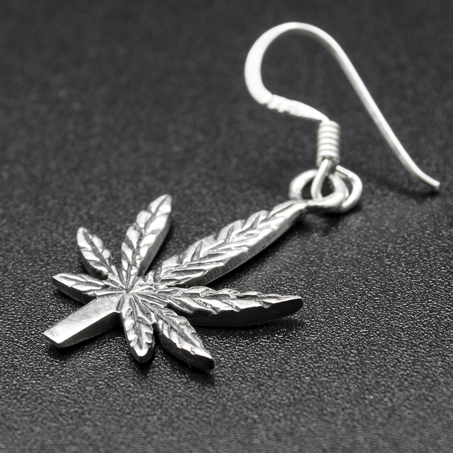 Серьга-крючок Cannabis leaf up (серебро, 925 проба) (ehs-035)