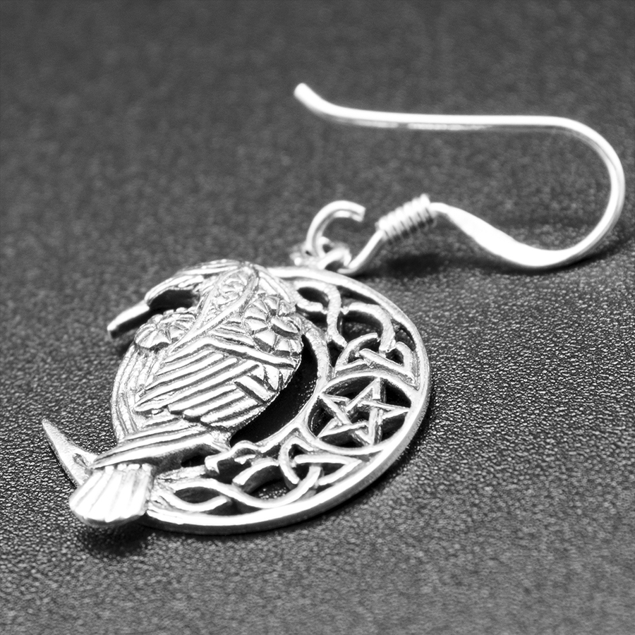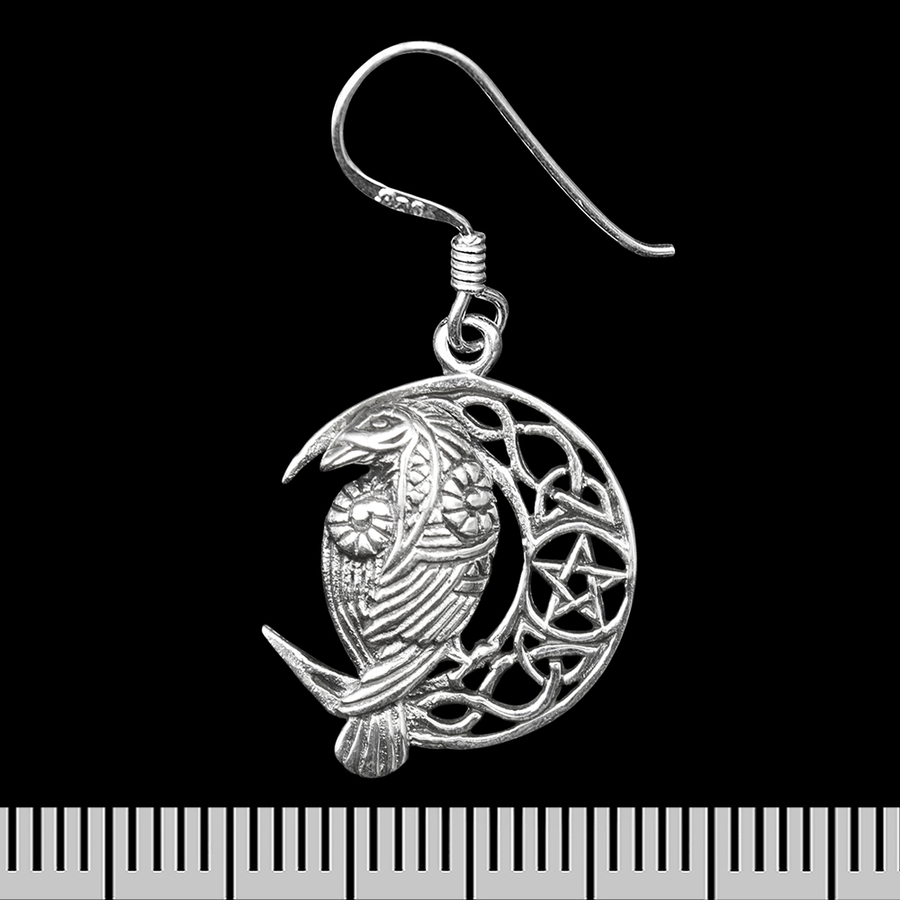 Серьга-крючок Ворон на полумесяце (серебро, 925 проба) (ehs-046)