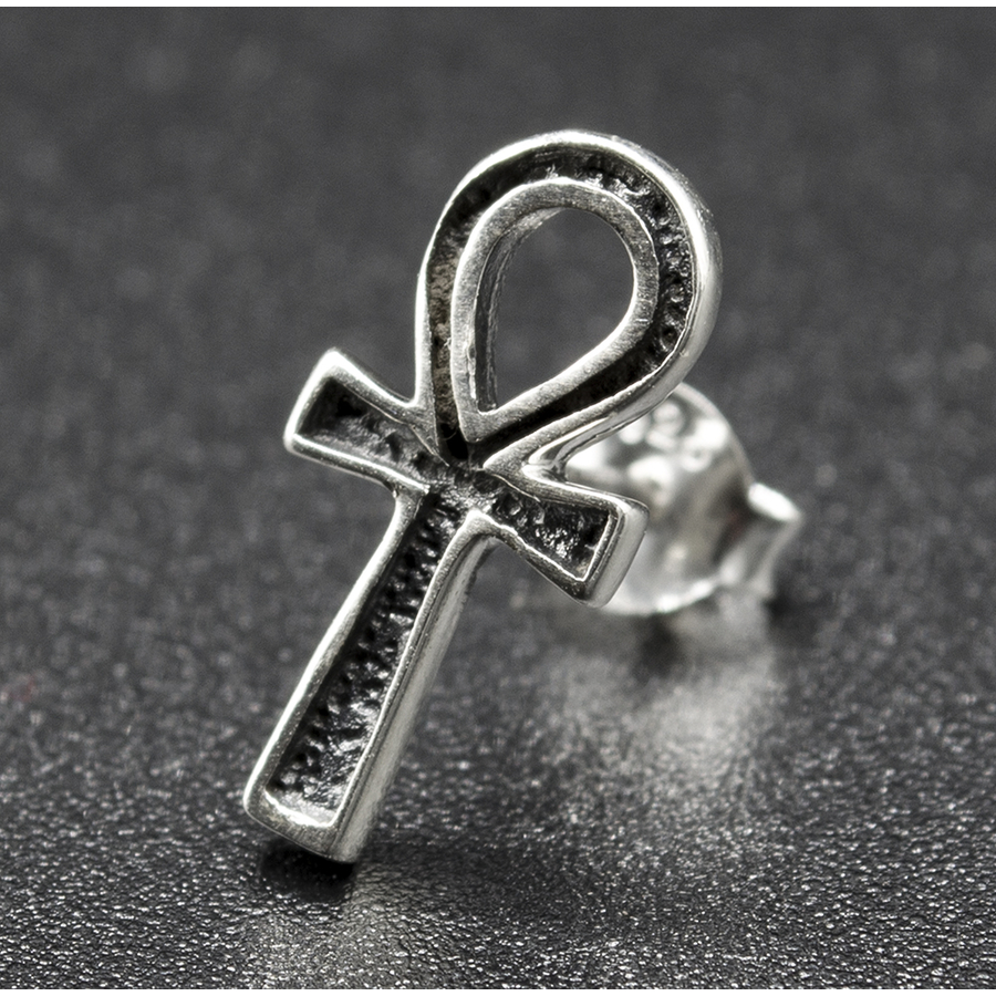 Серьга-гвоздик Анкх "кованый" (серебро, 925 проба) (st-039)