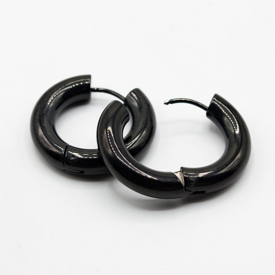 Серьга-кольцо (ea-113) хард-обманка утолщенная (титан, черный, диаметр 14/24мм)