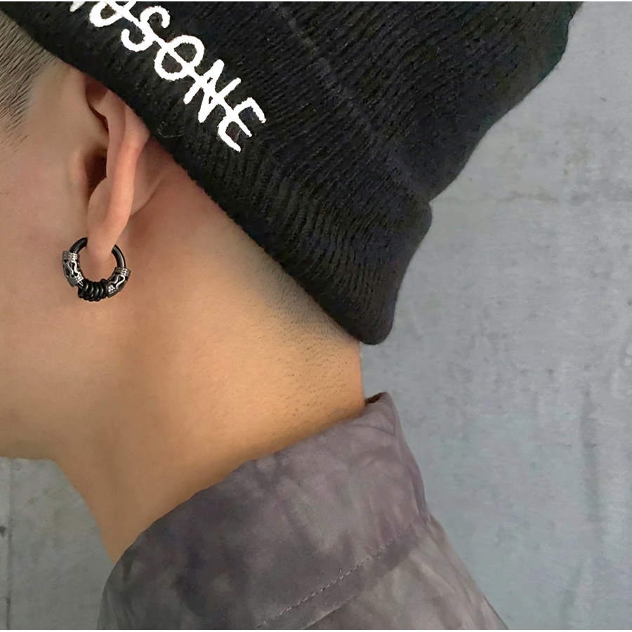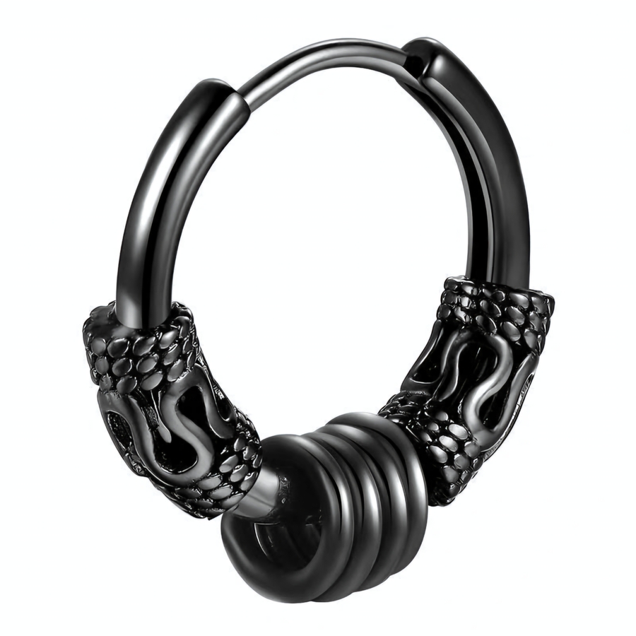 Серьга-кольцо хард обманка с кольцами и узором (титан, черный) (ea-088)