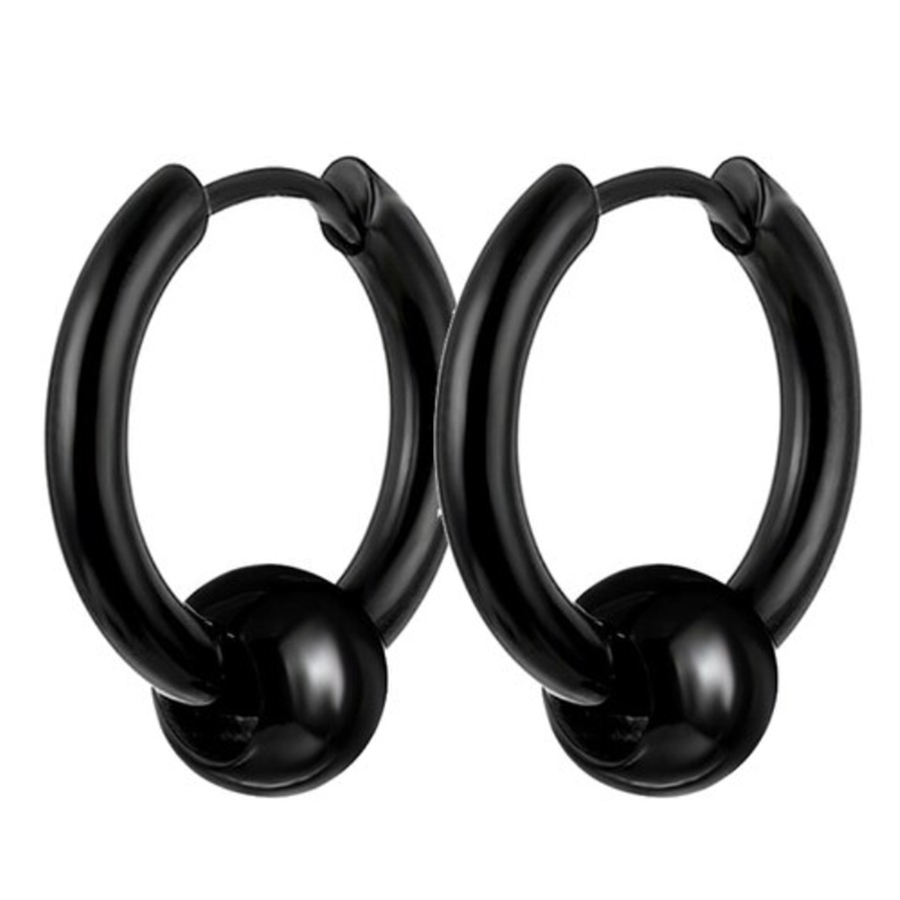Серьга-кольцо хард обманка с шариком (титан, черный) (ea-086)