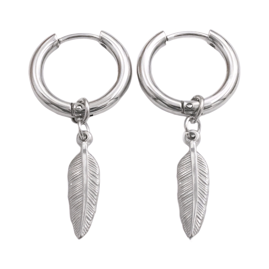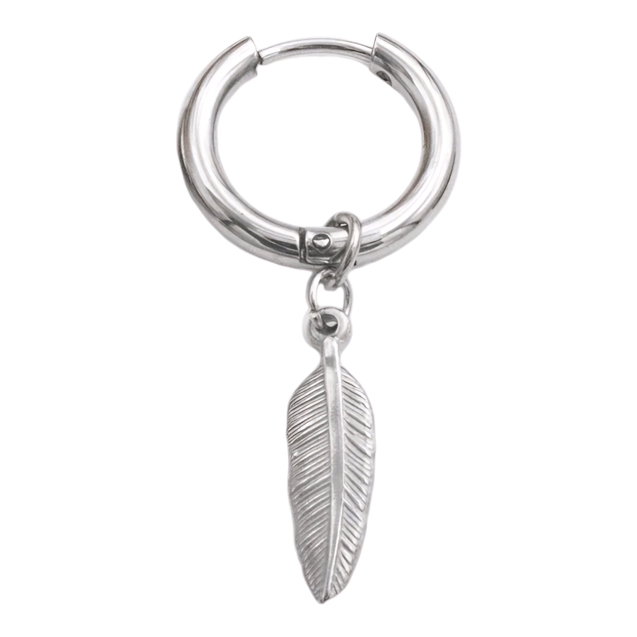 Серьга-кольцо хард обманка с пером (мед.сталь, стальной) (ea-140)