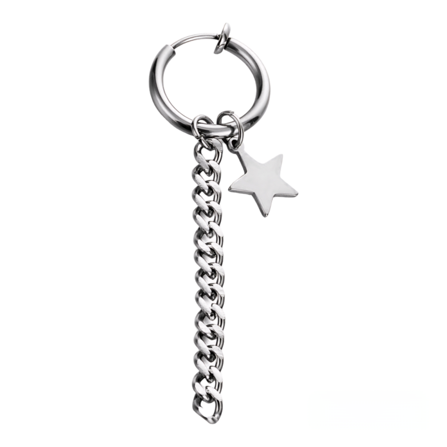 Серьга-обманка без прокола с цепочкой и звездой (мед. сталь, стальной) ea-058