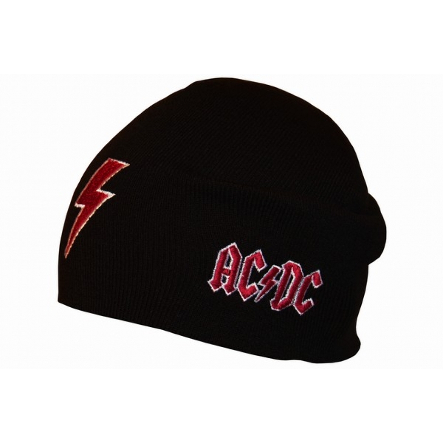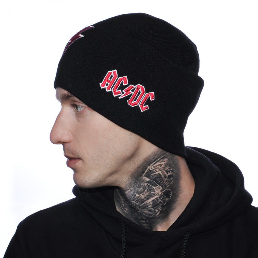 Двухслойная безразмерная Шапка с вышивкой AC/DC (молния) черная