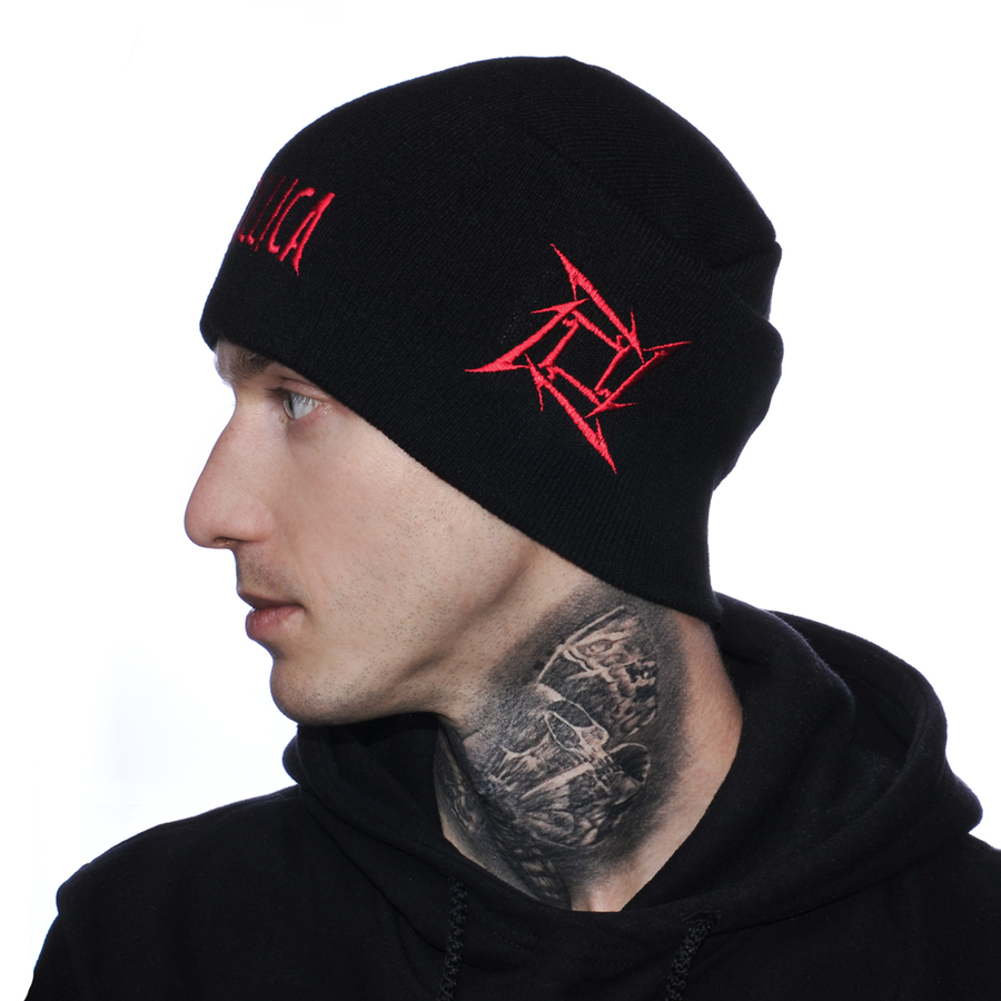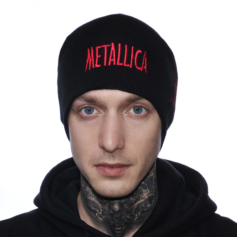 Двухслойная безразмерная Шапка с вышивкой Metallica черная