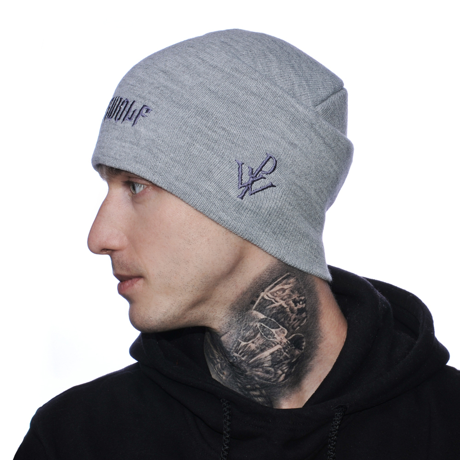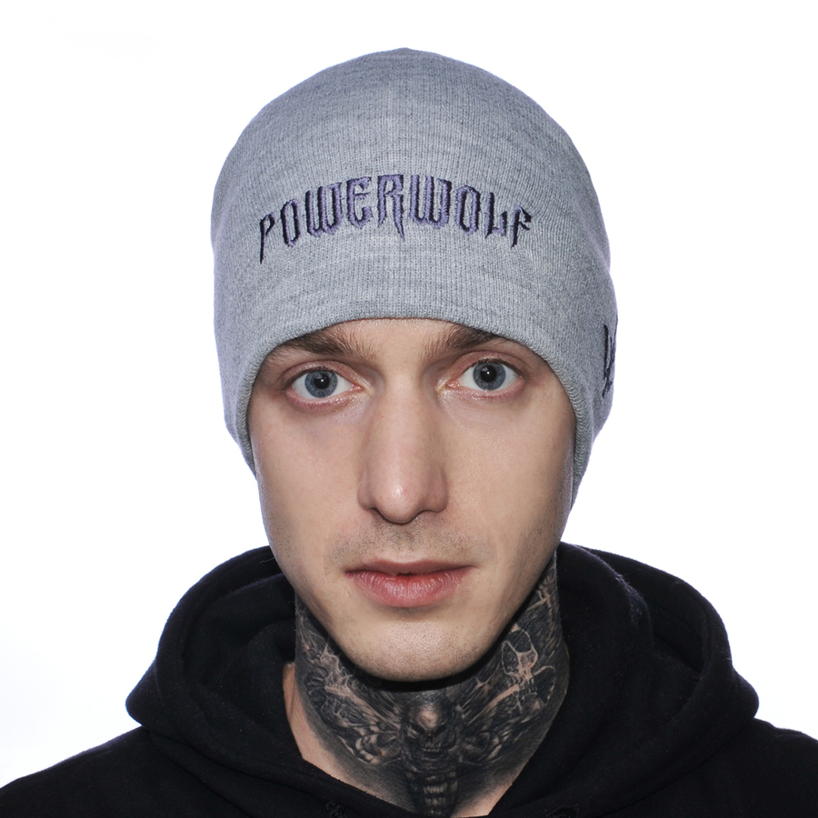 Двухслойная безразмерная Шапка с вышивкой Powerwolf серая