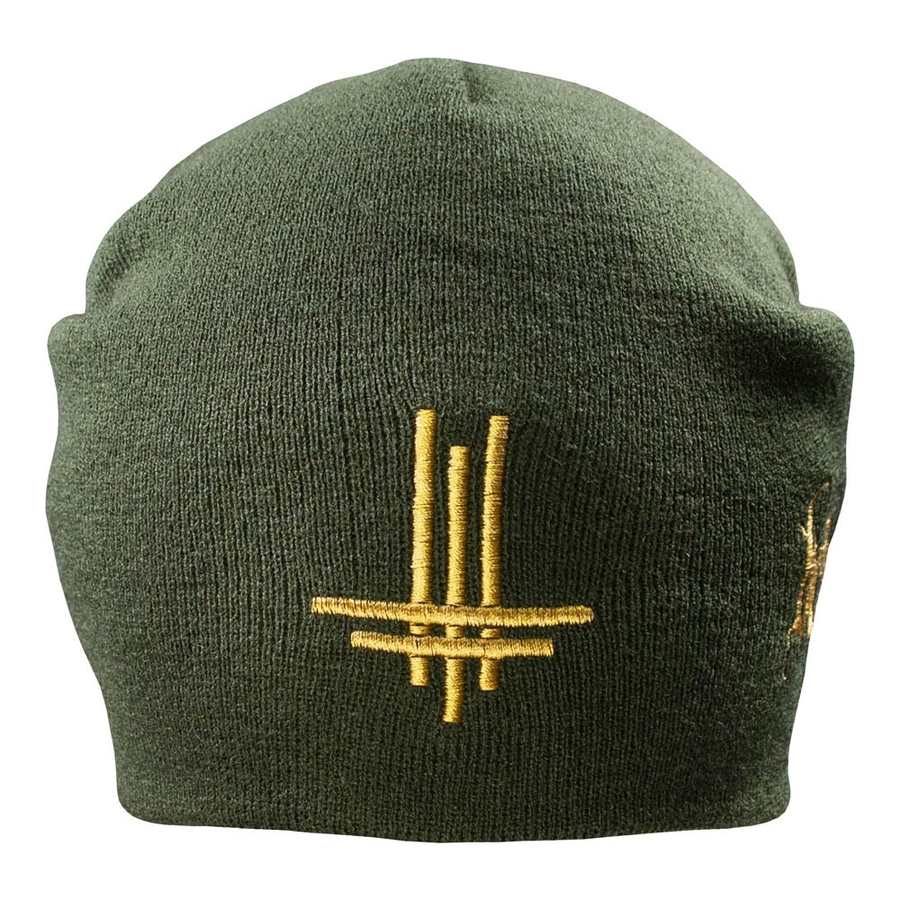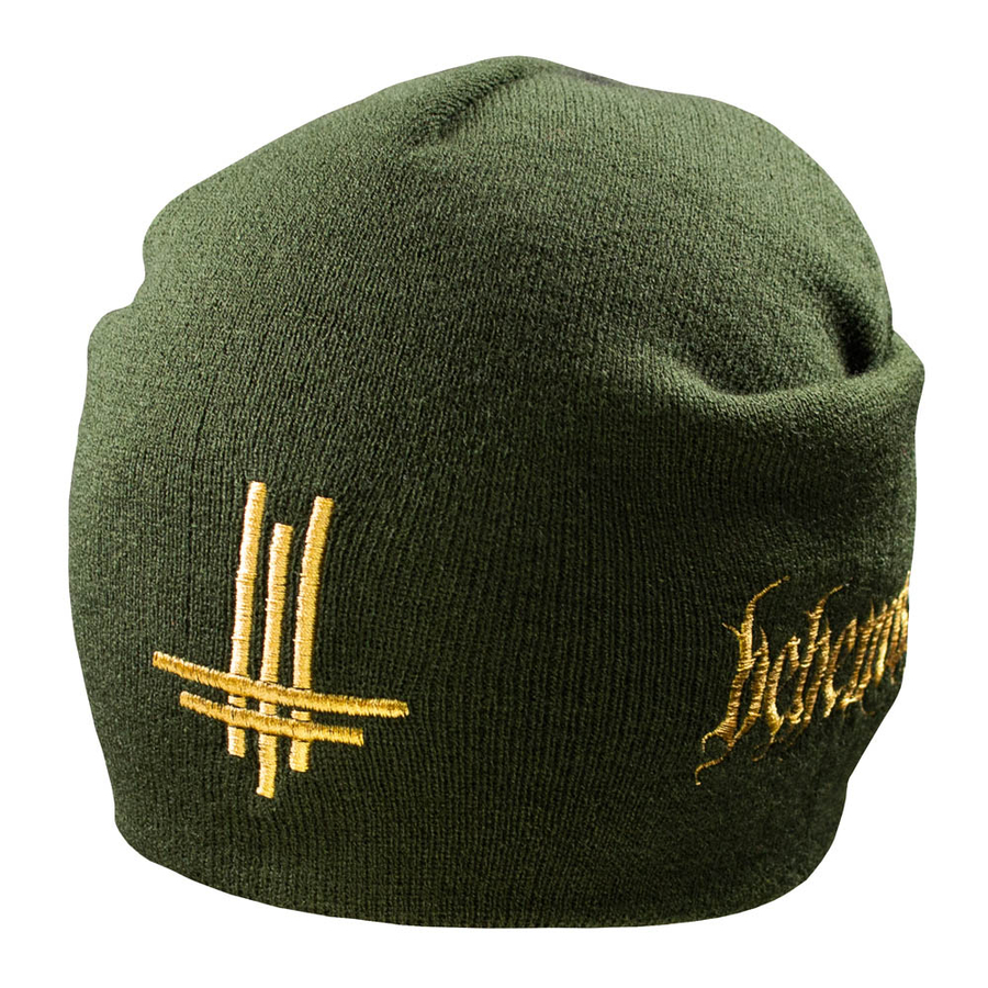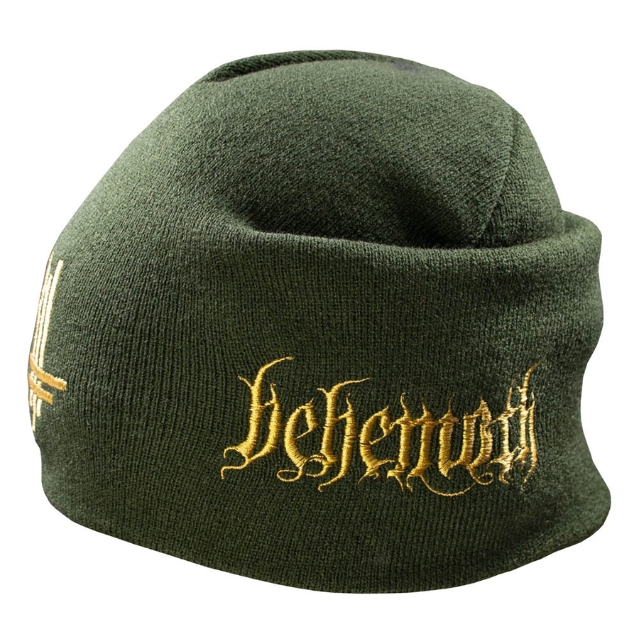 Двухслойная безразмерная Шапка с вышивкой Behemoth "Inverted Cross" олива