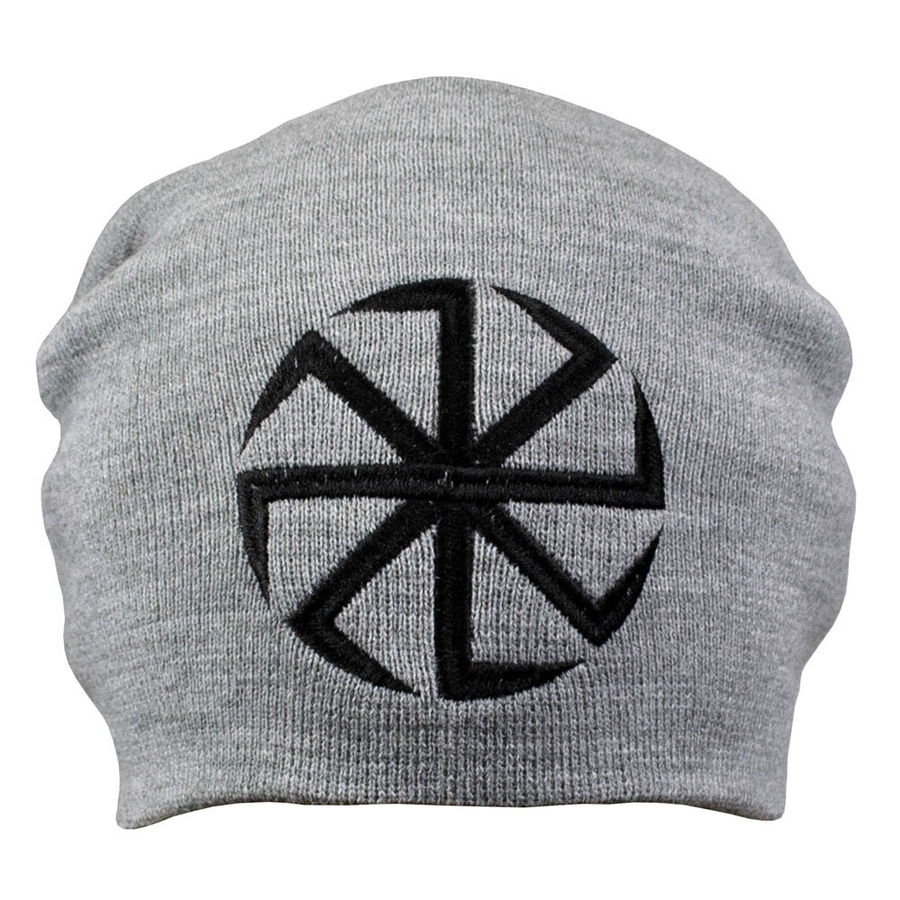 Двухслойная безразмерная Шапка с вышивкой Коловорот, серая