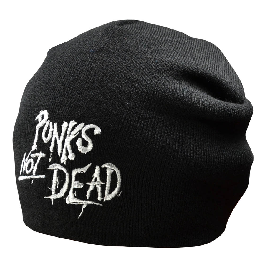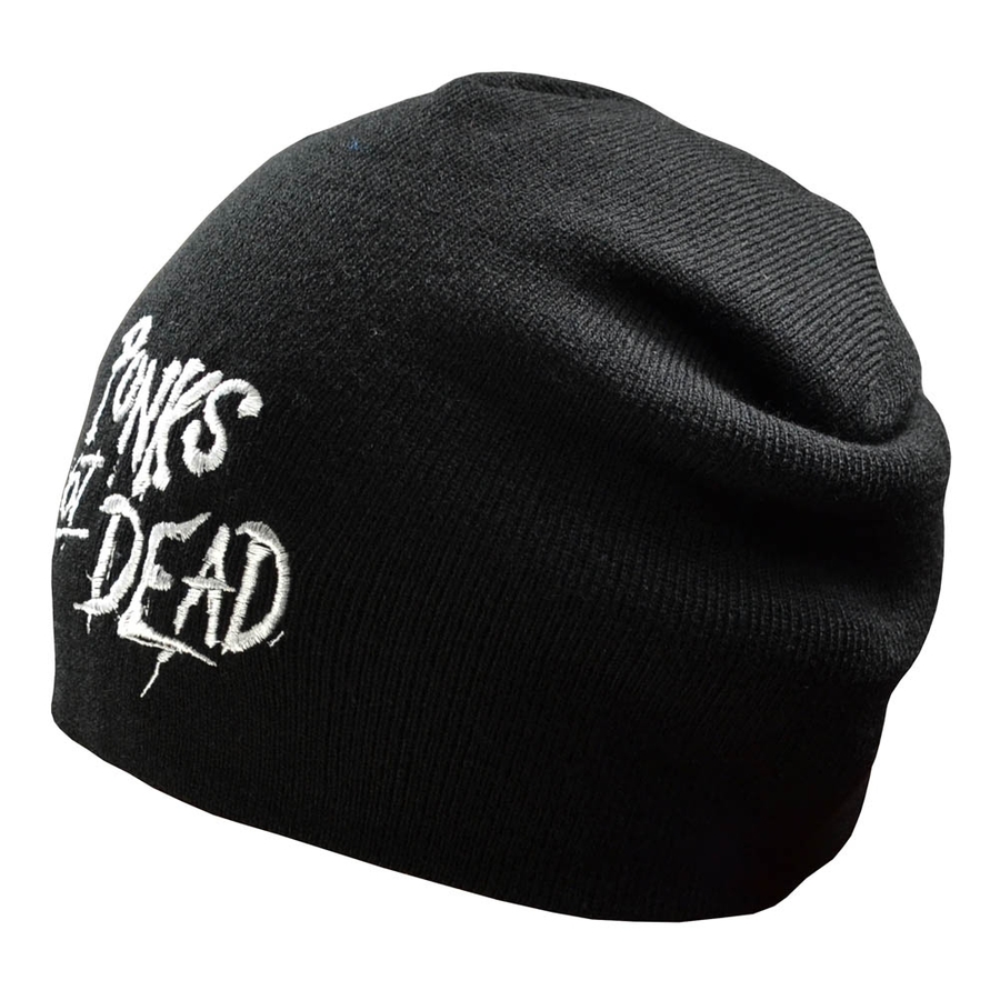 Двухслойная безразмерная Шапка с вышивкой Punk’s Not Dead черная