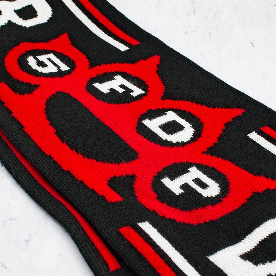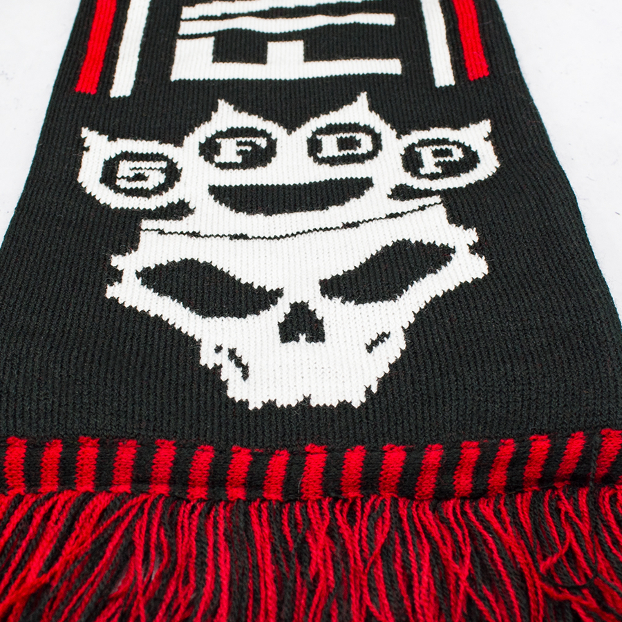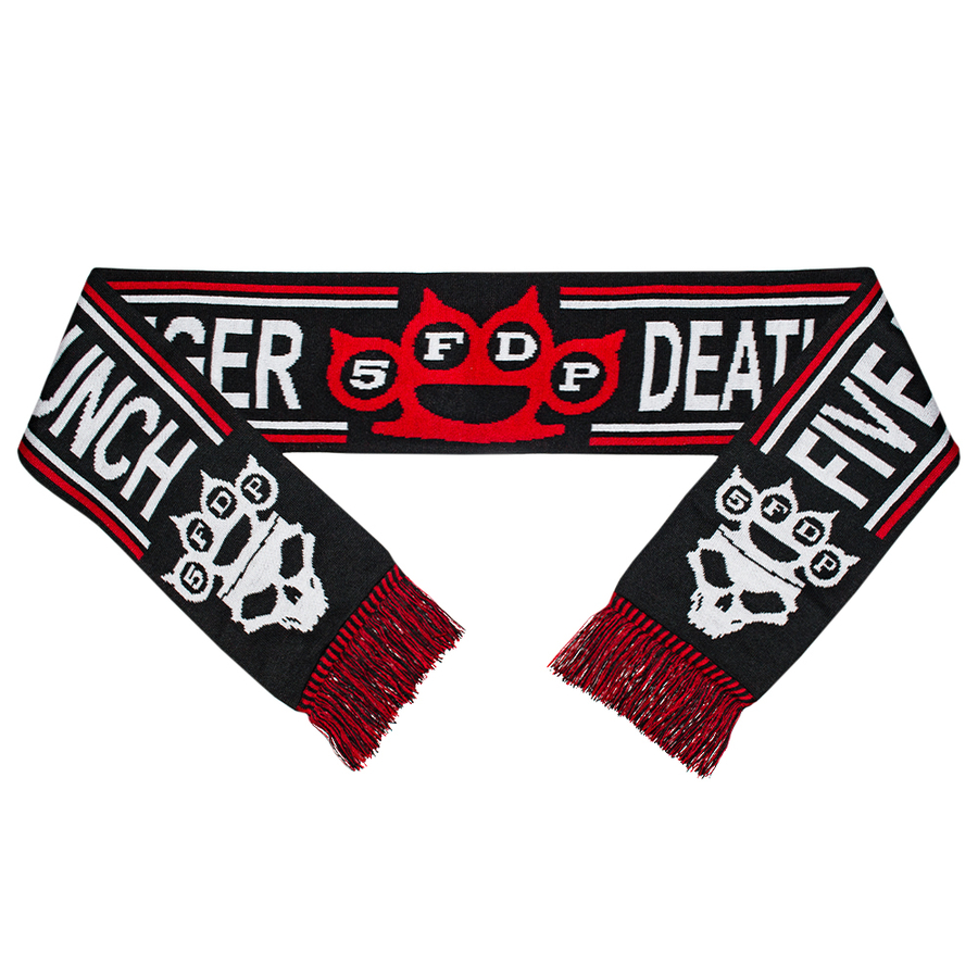 Шарф Five Finger Death Punch Длина 143 см, ширина 18 см, длина бахромы 7 см. Шарф мелкой вязки, двойной, плотный и теплый, изготовлен из акрила (искусственная шерсть). Акрил полностью гипоаллергенен, почти не мнется, хорошо держит цвет. Акрил легче шерсти, крепче, легко стирается, отлично переносит химчистку, быстро сохнет после стирки. Впоследствии цвет и рисунок будут неизменными на протяжении всего времени использования и стирки. Для стирки рекомендуется выбирать режим Деликат, Шерсть, Синтетика или Ручная стирка с температурой воды 30 градусов, а также минимальный отжим.