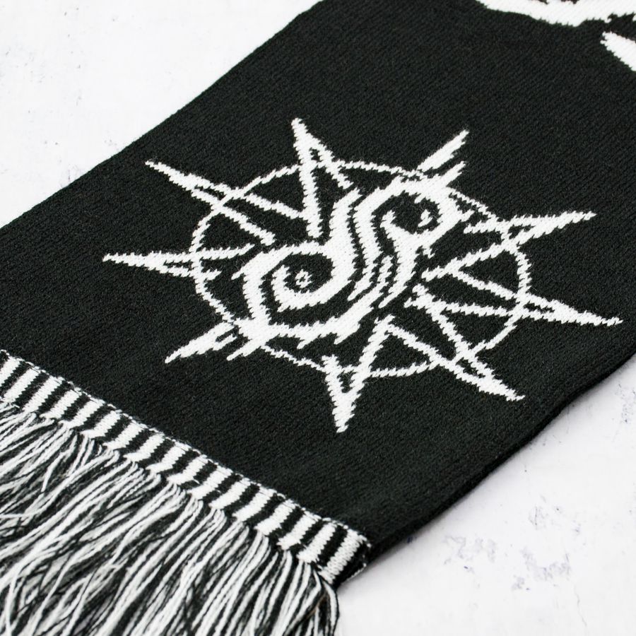 All Hope Is Gone, но есть легенда Nu metal, Alternative metal, Groove metal - культовые Slipknot. И если вокруг «People = Shit», то с этим шарфом ты обозначишь себя и найдешь Маготов (Maggots) - индивидуальность в единстве. Шарф является одновременно аксессуаром, который является мощным знаком принадлежности к фанатам группы, а также стильным элементом одежды, который согреет в холодную погоду. Классическая и густая бахрома на концах добавляет фанатский вид. Шарф выполнен мелкой качественной машинной вязкой, двойной, плотный и теплый, изготовлен из акрила (искусственная шерсть). Акрил полностью гипоаллергенен, почти не мнется, хорошо держит цвет. Акрил легче шерсти, прочнее, легко стирается, прекрасно переносит химчистку, быстро сохнет после стирки. Со временем цвет и рисунок останутся неизменными на протяжении всего времени использования и стирки. Для стирки рекомендуется выбирать режим Деликат, Шерсть, Синтетика или Ручная стирка с температурой воды 30 градусов, а также минимальное отжимание.