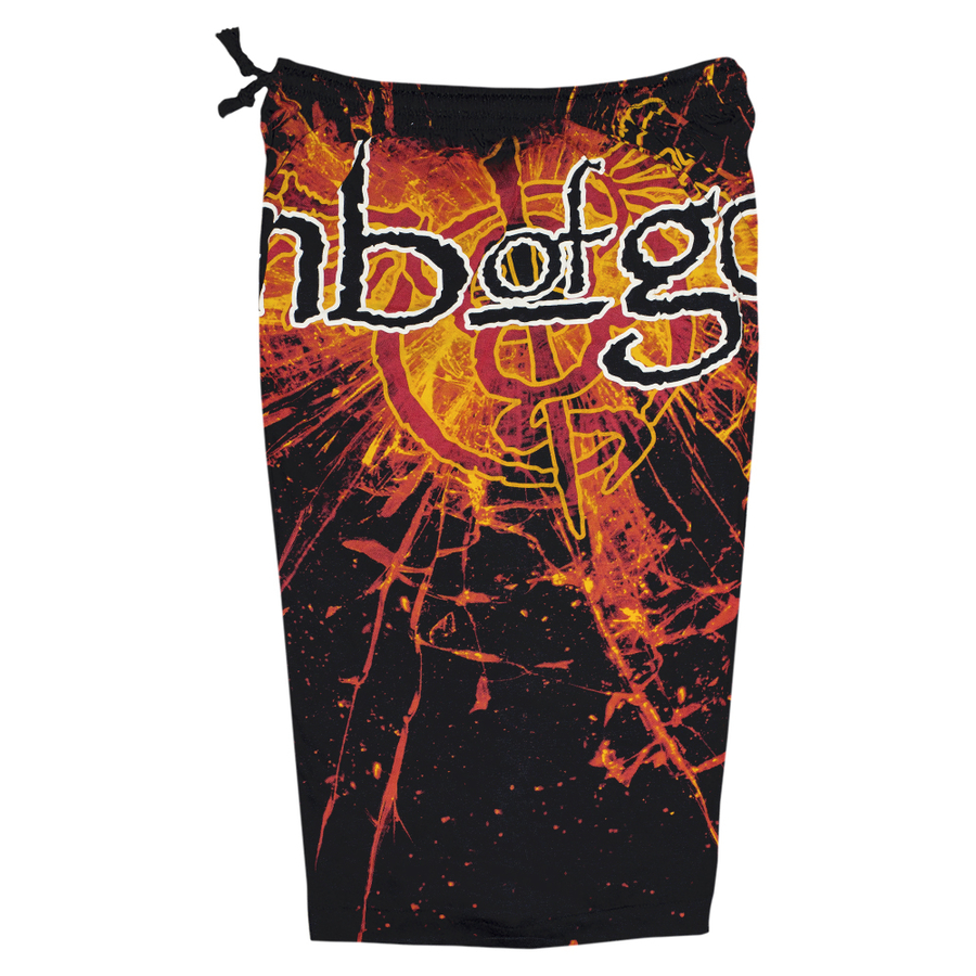 Черные шорты с большим ярким графическим принтом с логотипом метал-группы Lamb of God на фоне пламени от взрыва Материал: 100% хлопок плотная но лёгкая ткань обеспечивающая комфорт и долговечность Печать: высококачественная шелкотрафаретная печать пластизольными красками high definition устойчивая к выцветанию и растрескиванию Особенности: качественные швы ткань не растягивается Идеально подходят для поклонников тяжёлой музыки группы Lamb of God и любителей неформальной одежды Уход: стирать при температуре не выше 30°