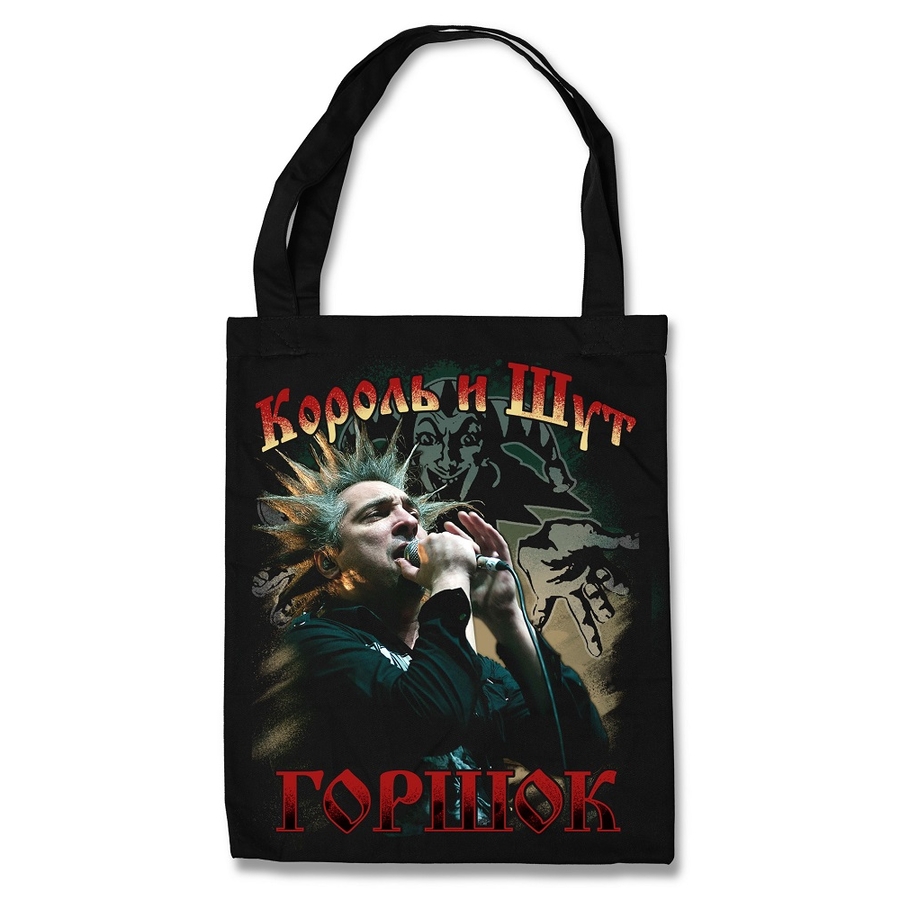 Сумка Шоппер Король и Шут (Горшок)Стильная сумка шоппер с логотипом любимой группы, незаменимый надежный аксессуар на каждый день.Материал: саржа, 100% х/бПлотность ткани 250 г/м2Высота 41 см, ширина 35.5 см, высота ручки 27 см.Изображение нанесено методом шелкотрафаретной печати пластизолиевыми красками производства EU