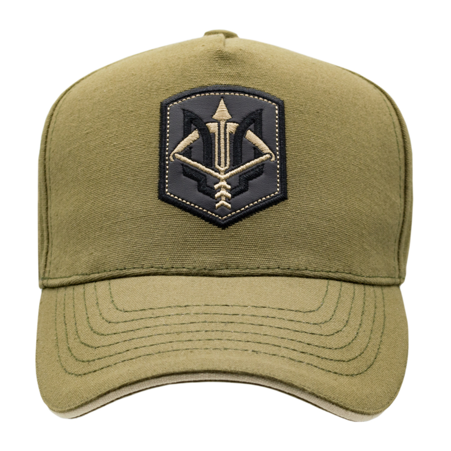 Бейсболка оливкова з патчем Тризуб з арбалетом (uacp-001) Матеріал 78% бавовна, 22% поліестер, підкладка 100% бавовна. Стильна високоякісна бейсболка з патчем. Патч зроблений із екошкіри, прошитий по краям та вишитий нитками. Розмір 56-58, але позаду можна відрегулювати тим самим збільшити або зменшити розмір.