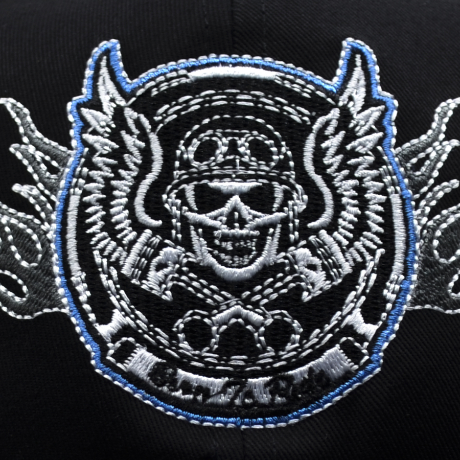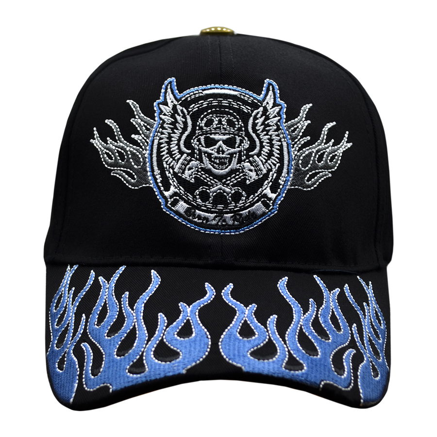 Бейсболка вишита Born To Ride (blue flame, skull and wings)