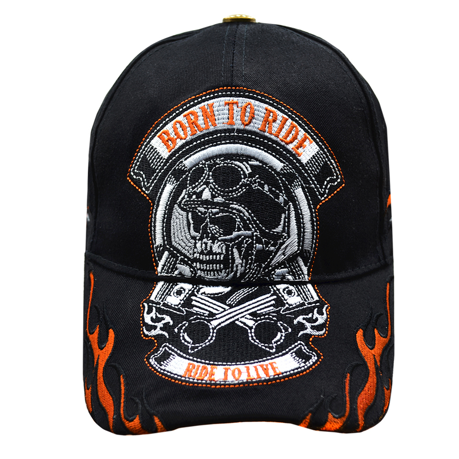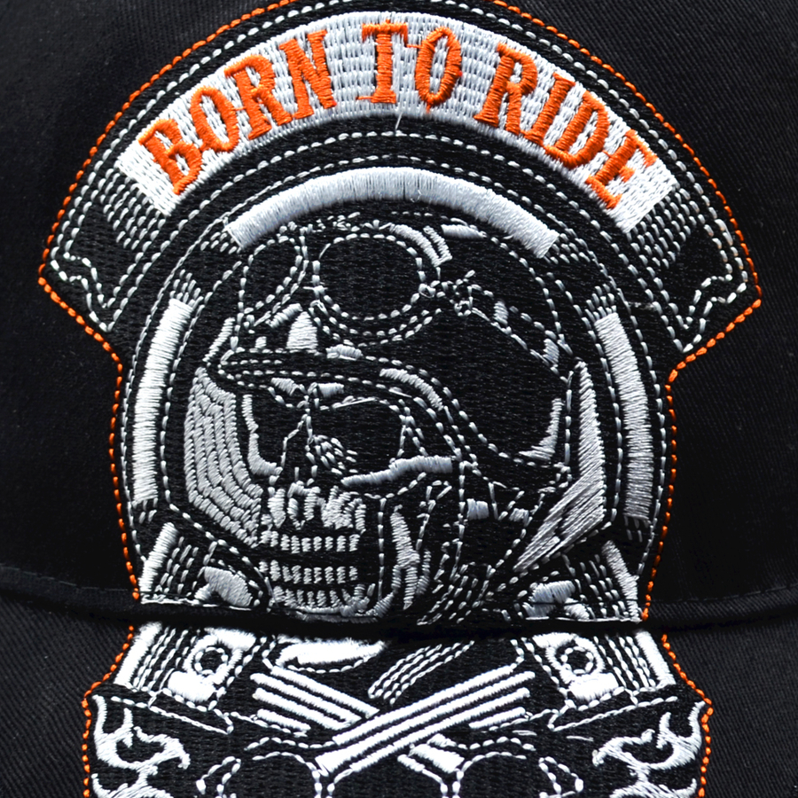 Бейсболка вишита Born To Ride, Ride To Live (big skull)Високоякісна бейсболка преміум класу з вишивкою.Матеріал: 90% бавовна, 10% поліестер.Без розміру. Обсяг регулюється ремінцями з "липучкою".Виробництво: EU.