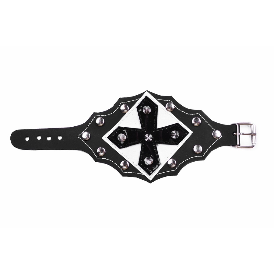 Браслет фігурний Хрест на белом тлі, малий шип і хольнітени №330