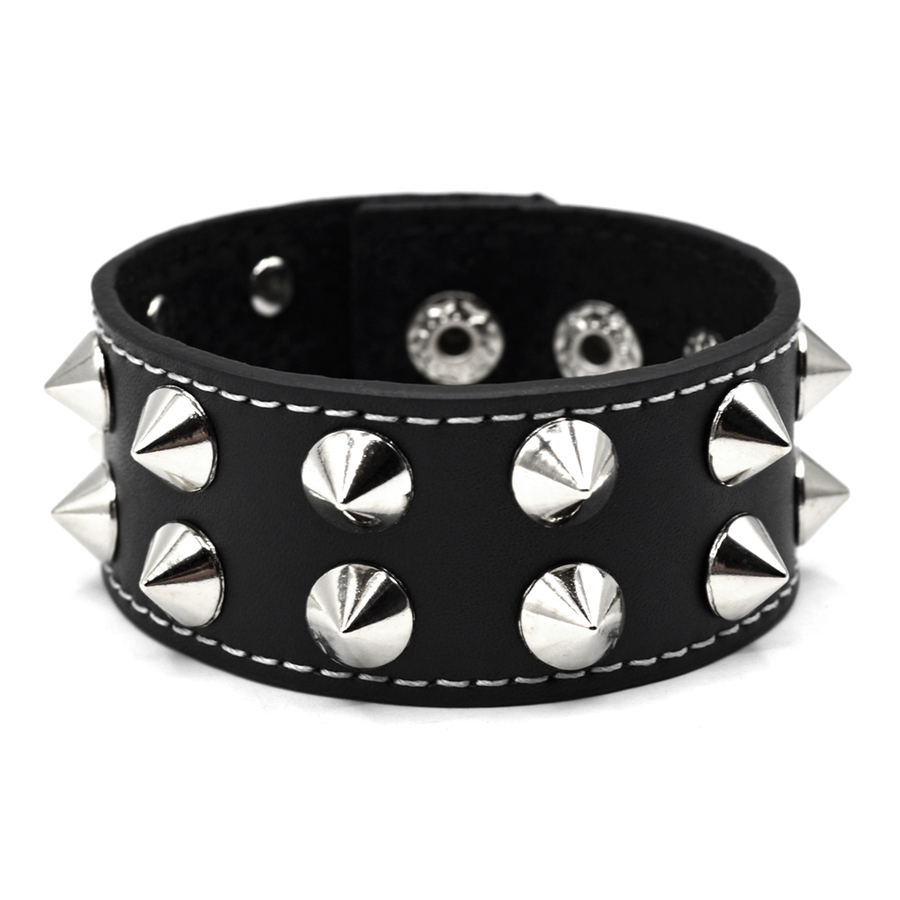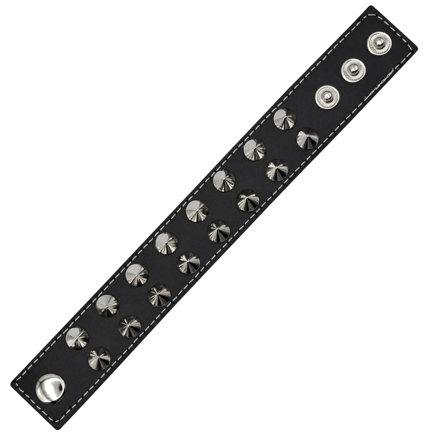 Браслет шкіряний два ряди конусоподібних шипів (bfl-003) Високоякісна прошита шкіра, високоякісна металева фурнітура. Високоякісна товста шкіра, високоякісна металева фурнітура. Довжина до кнопок від 17 до 21 см. Виробництво EU