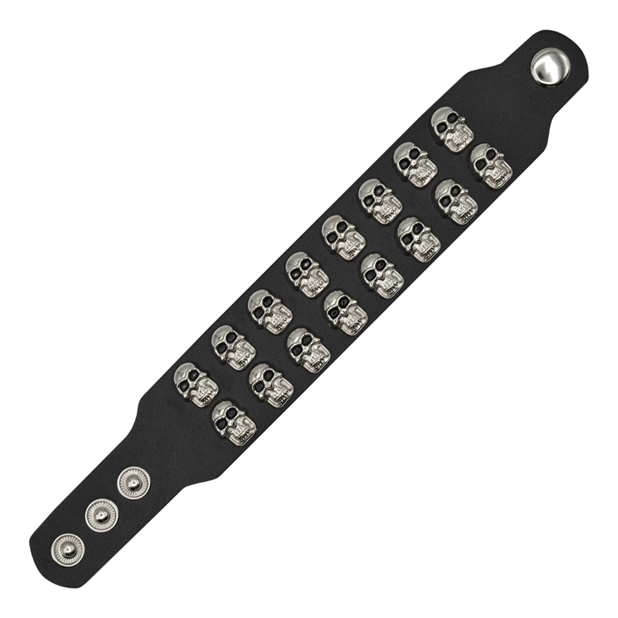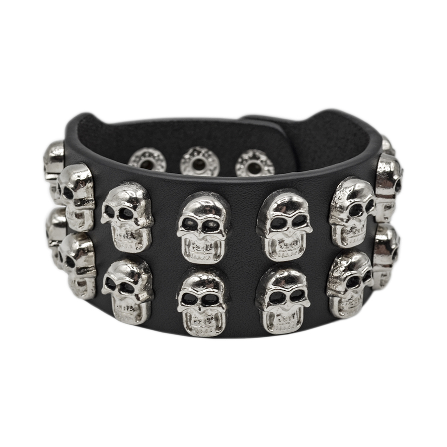 Браслет шкіряний черепа у два ряди (bfl-021) Високоякісна товста шкіра, високоякісна металева фурнітура. Довжина до кнопок від 18 до 21 см. Виробництво EU