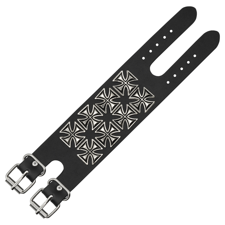 Браслет шкіряний два ряди залізних хрестів (bfl-027) Високоякісна товста шкіра, високоякісна металева фурнітура. Довжина від застібки до отворів 18-22 см. Виробництво EU