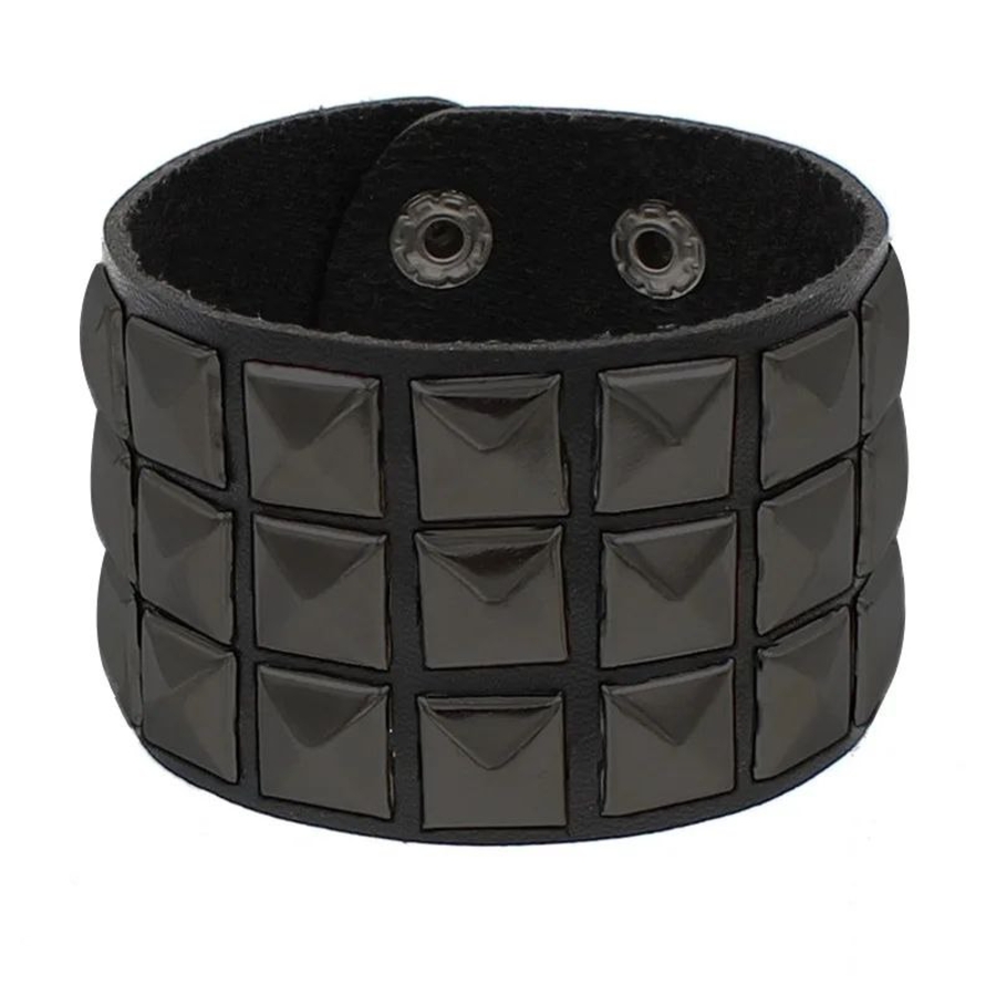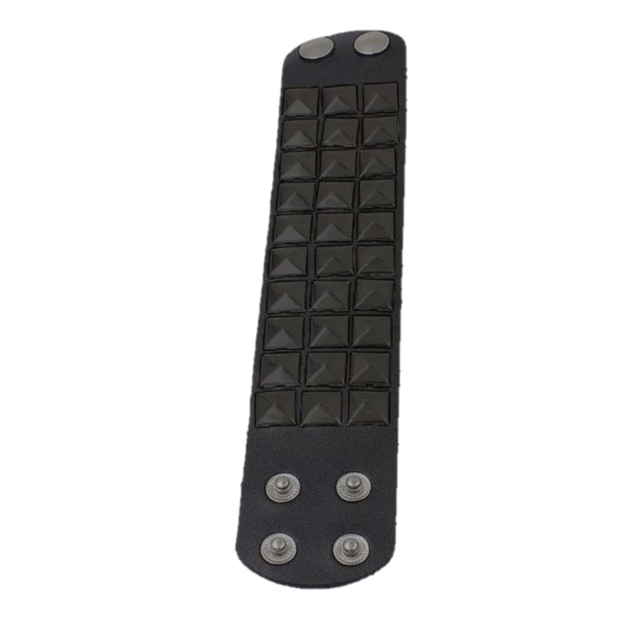 Довжина до кнопок 18 та 20 см. Ширина 4,8 см Браслет виконаний з поліуретанової шкіри (екошкіри) з металевою фурнітурою, з кнопковими застібками. Поліуретанова шкіра (екошкіра) екологічна і схожа з натуральною шкірою. Матеріал має цінні переваги: - повторює фактуру та гнучкість натурального аналога: - не заважає тілу «дихати» завдяки мікропористій структурі; - не розтріскується під час використання; - зберігає м'якість на морозі; немає різкого запаху.