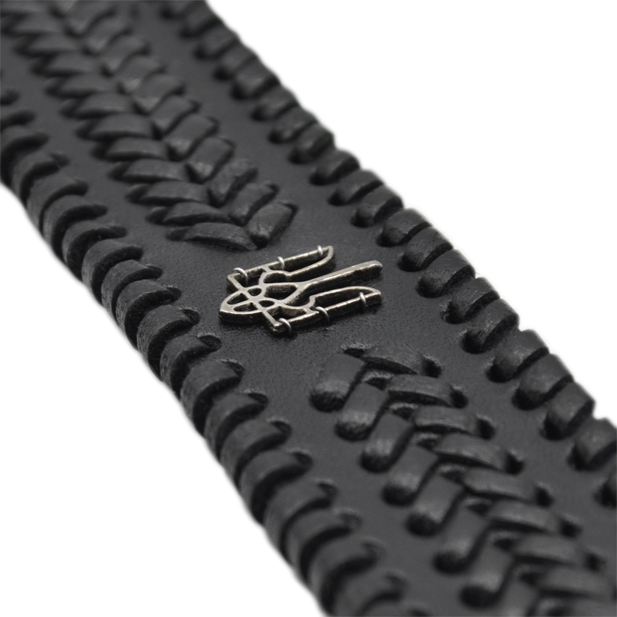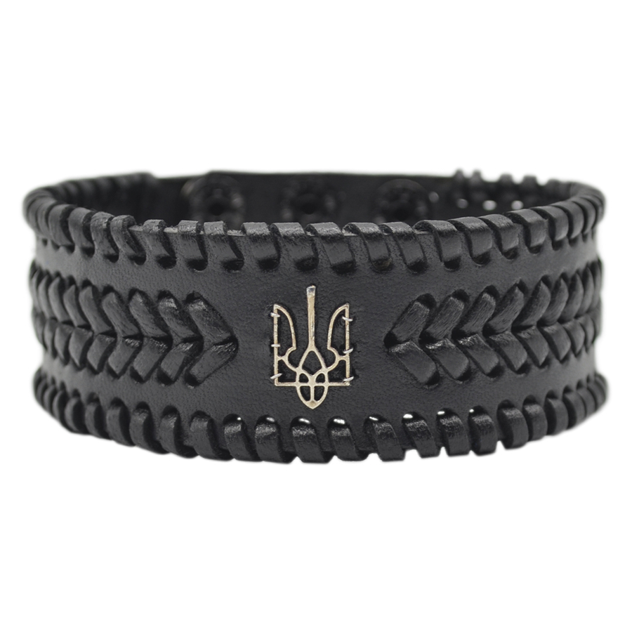 Браслет з плетінням шкіряний чорний із Тризубом (ptsbua-007)
