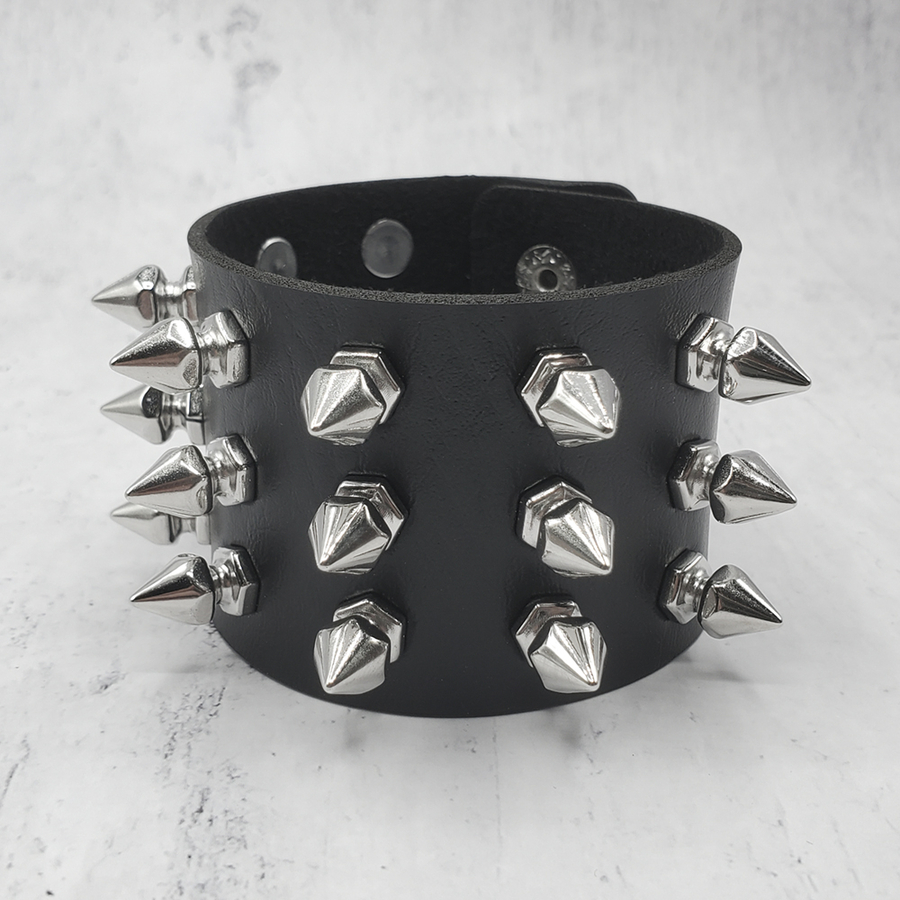 Браслет з трьома рядами фігурних шипів (bpu-001)