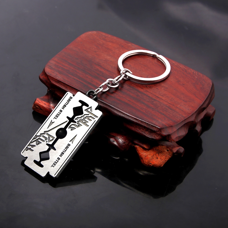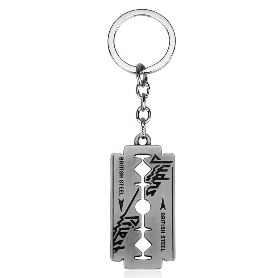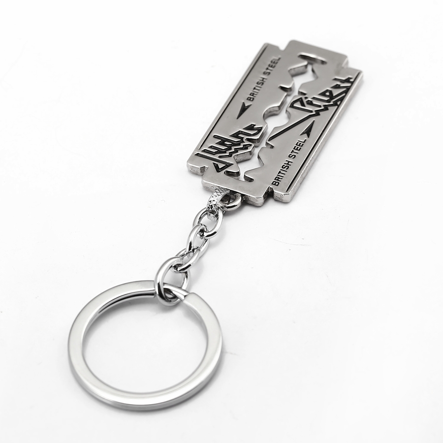 Брелок Judas Priest "British Steel" (лезо) (kc-001) Матеріал: металевий сплав. Усі літери та лінії нанесені методом лазерного гравіювання. Висота 5 см, ширина 2,6 см