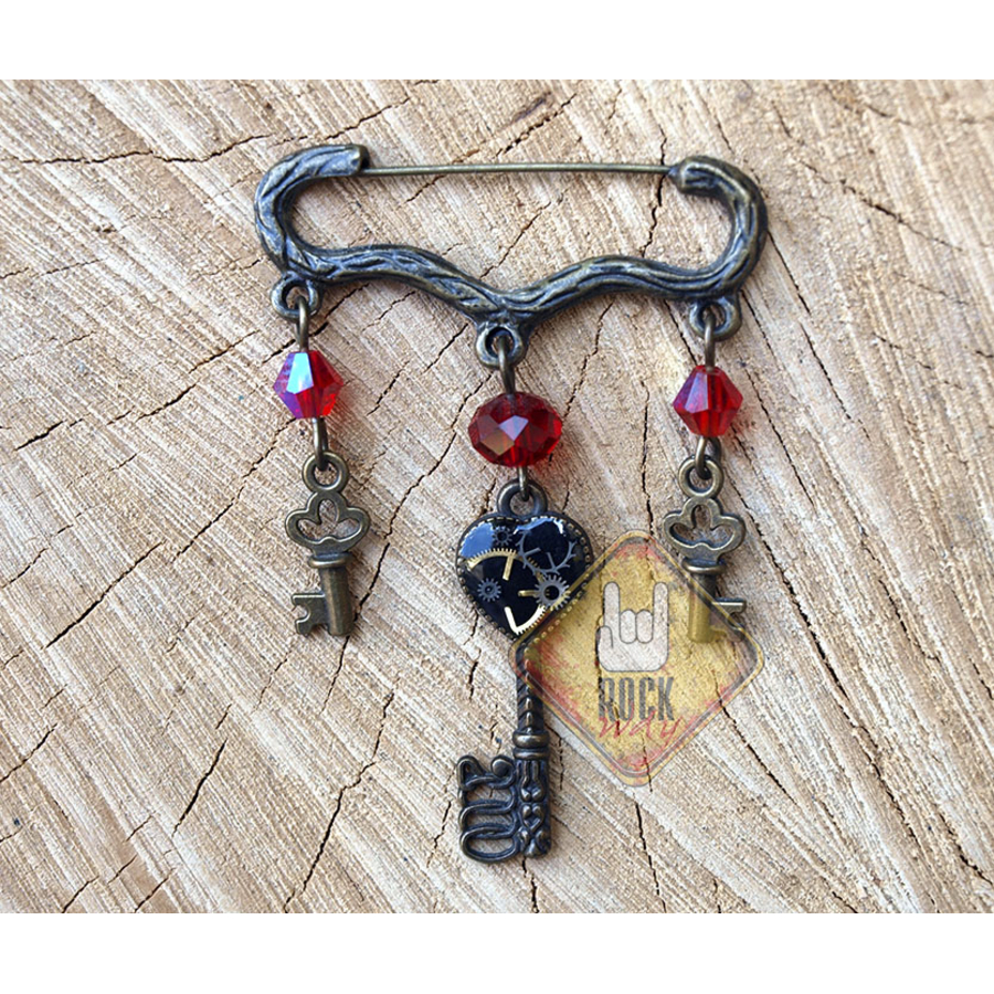 Стимпанк брошь в виде булавки-веточки с ключами.