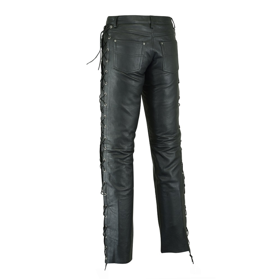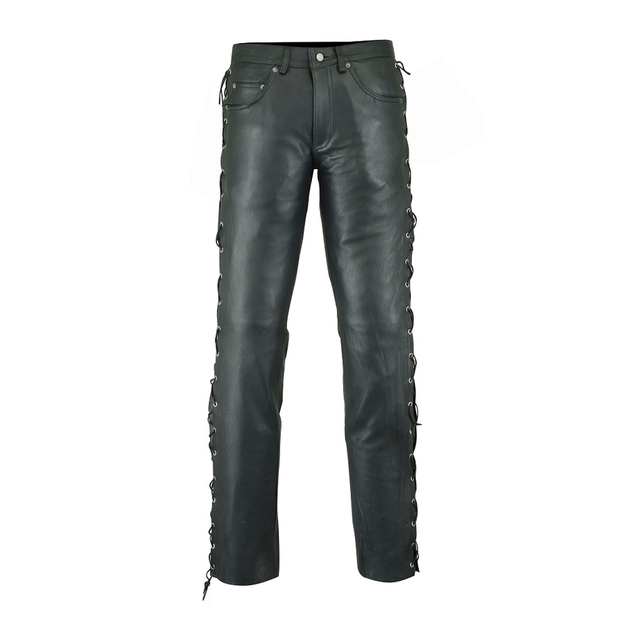 Ці чоловічі штани, виготовлені з якісної зносостійкої телячої шкіри, слугуватимуть не один рік і надовго збережуть відмінний вигляд.