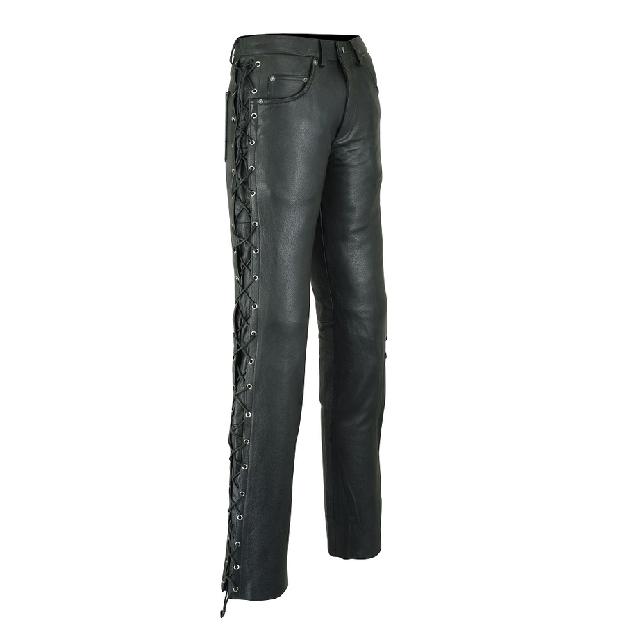 Натуральна шкіра високої якості дозволяє з комфортом носити ці чоловічі штани практично в будь-який сезон.