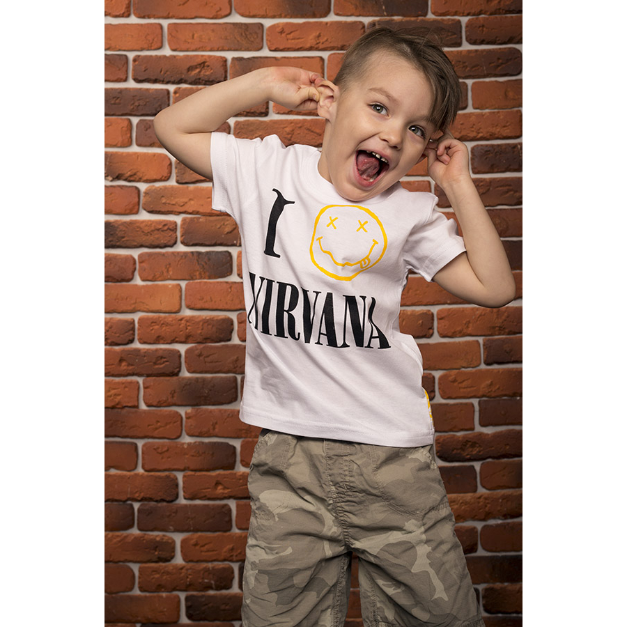 Дитяча футболка Nirvana (I love Nirvana) біла. Материал 100% бавовна. Долговечна и безопасна.