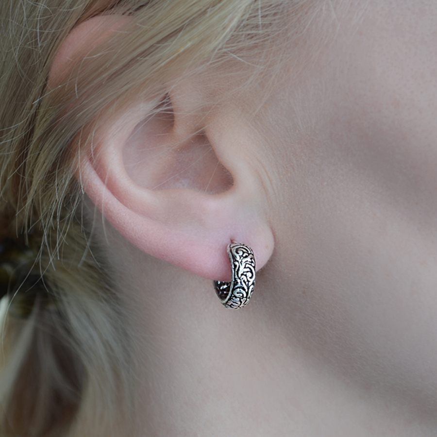 Сережка, кільце піратське з візерунком (діаметр 15мм, срібло 925 проба) (eas-038)