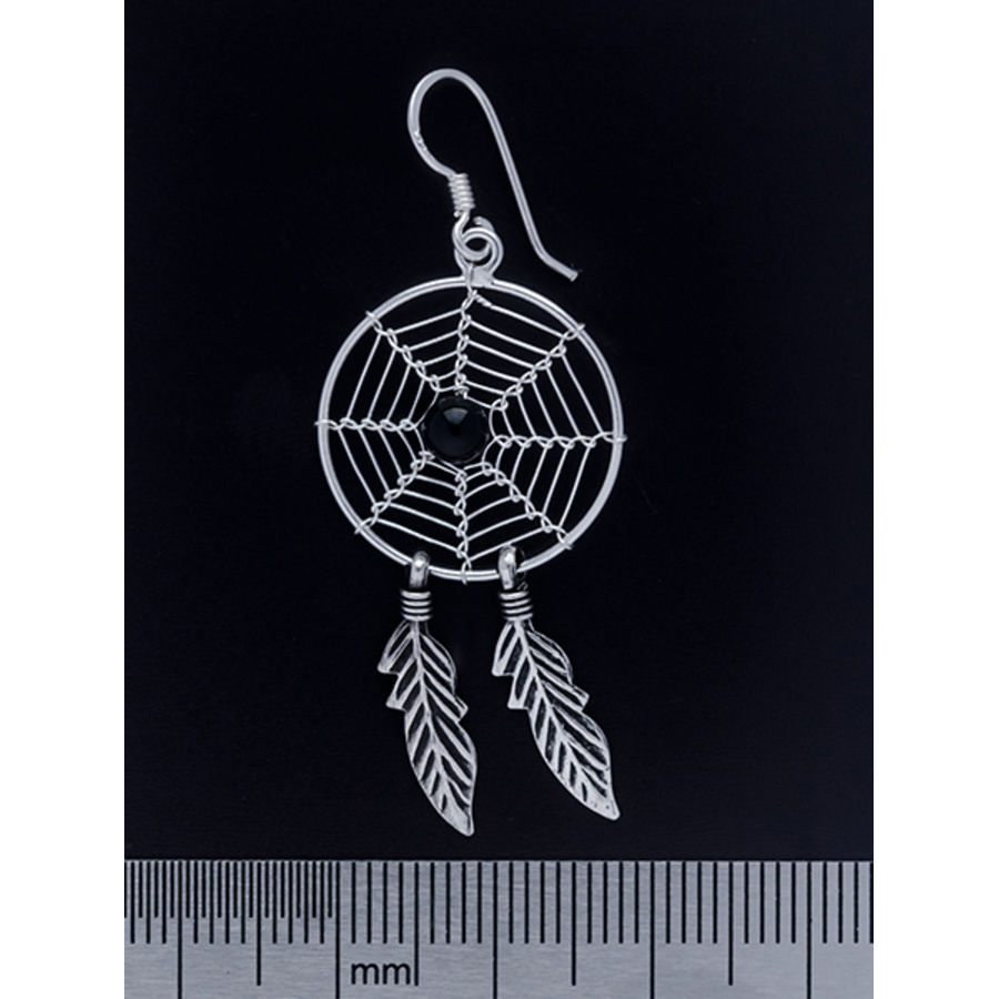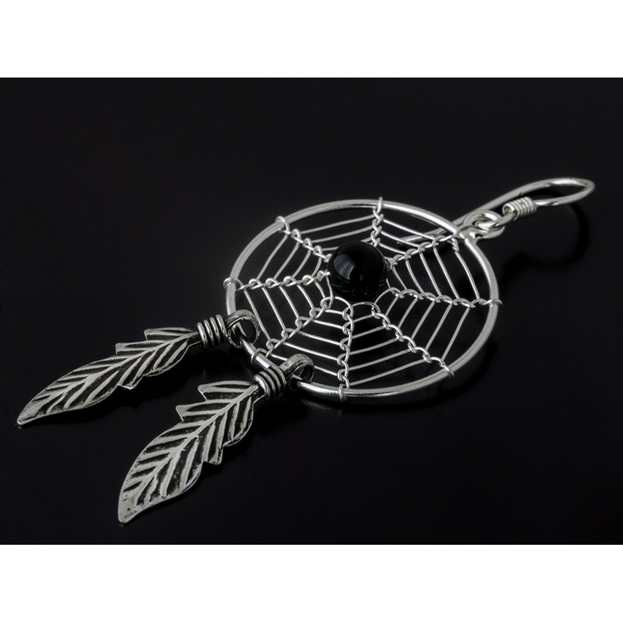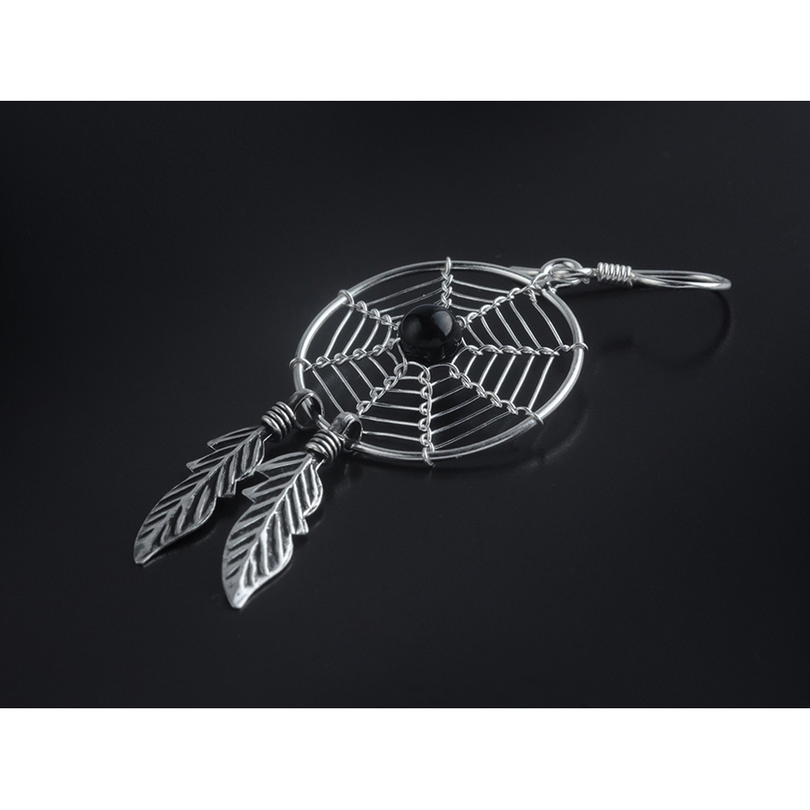 Сережка, ловець снів великий з чорним каменем (срібло 925 проба) (eas-045)