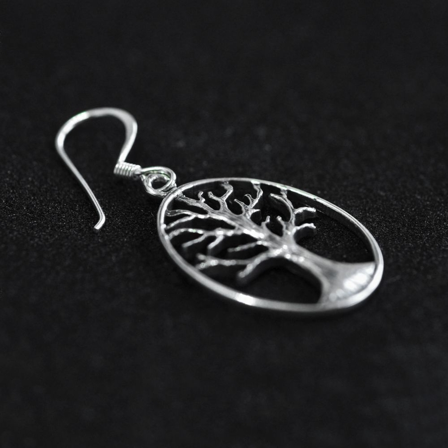 Сережка, дерево (высота 26мм, срібло 925 проба) (eas-081)